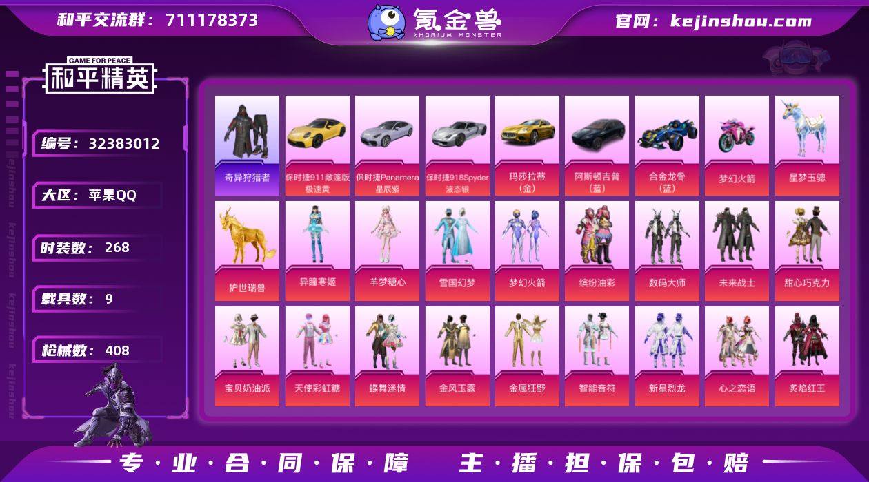 IOS 极品号 王牌印记18 热力值14w 小金鞋 玛莎拉蒂MC20星石白 玛莎拉蒂Ghibli粉 赤兔 照夜玉狮子 合金龙骨蓝 幽焰风驰摩托车 越野奶龙龙 满级SCARL天蓬元帅 满级M416心之恋语 满级UMP45相思残雪 满级AKM梦之光华 满级Mini14绚金玫瑰 洛天依 雪国梦幻 紫螳螂 第五大道 星之彼岸 放客神游 梦幻火箭 宝贝奶油派 粉螳螂 蓝螳螂 动感兔斯基人偶服 雪山精英 深海小丑鱼 迅捷狂鲨 小丑鱼 暗影哥特 派对舞王 浪漫天命 漫步者 【8载具 30粉装 18特效枪】玩偶服猪猪侠 羊梦糖心 桃源时光 星穹咏叹调 蜜语绒猫 莲影清波 星云暗核 拂晓神骑 呆萌星弥 小可学妹 超级赛亚人孙悟空 暗夜鎏金 旋转彩虹 复仇流浪者 寒光使者 酣梦娃娃 彩虹鹿灵 山涧鹿灵 相思残雪 俏皮狐尾 金风玉露 蝶舞迷情 银河战甲 满级破片手榴弹秋玉花灯 满级烟雾弹电雾迷城 满级DP28豹影疾电 满级98K巳巳如意 6级MG3酷泡奶龙 3级SCARL金蛇镇世 3级M416女娲灵识 3级GROZA精灵之光 2级AWM天使羽翼 1级M16A4垂柳戏鸭 1级M417第五大道 1级DP28圣堂之誓 1级SPAS12蜜语绒猫 270套装 387枪械 2B战斗服款 卖崽青蛙 短笛 月影鸳鸯 梦之呓语 好奇恐龙 夜瞳黯灵 狂花道雅典娜 都市丽猫 临安公主 星际旅行 舰行太空 2P战斗服款 忠真马岱 忠义严颜 湖雨初晴 多纳泰罗 达芬奇 粉雾星云 情公主 冰公主 军刀雅典娜 英勇保护者 魔力冰咖 诡夜天鹅 暗夜傀儡 暗夜魅影 K23419 和平买号找回永久包赔带二次营地ID:50598060