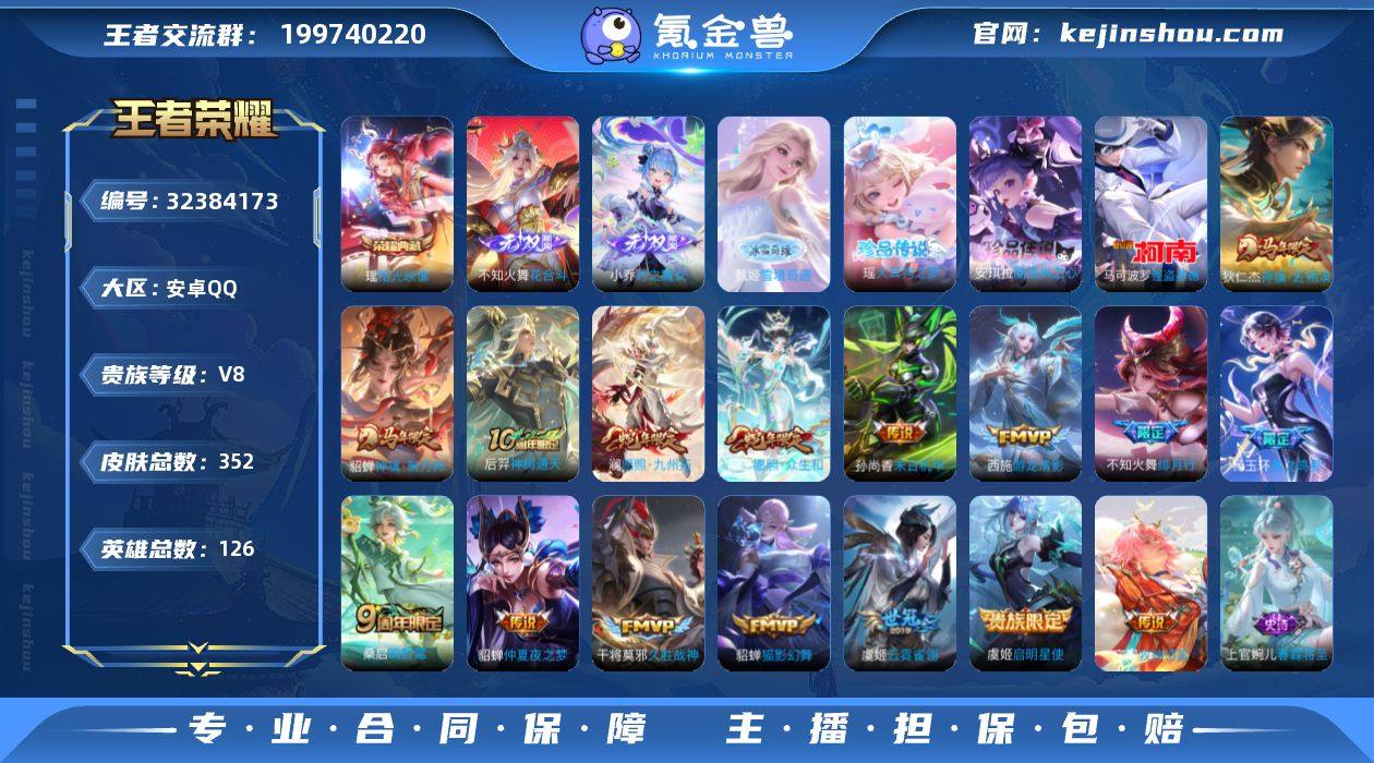 【5104】安卓Q-V8-最强王者段位-126英雄-352皮肤-1典藏皮肤-3无双-3珍品传说-16传说-102史诗 【英雄全皮】:孙权全皮,不知火舞全皮,敖隐全皮,空空儿全皮,影全皮,姬小满全皮,少司缘全皮 【荣耀典藏】:瑶拾光映像 【无双皮肤】:甄姬雪境奇遇,不知火舞花合斗,小乔时之魔女 【珍品传说】:安琪拉酷洛米之心,瑶大耳狗之梦,马可波罗怪盗基德 【传说皮肤】:狄仁杰神骥赴朔漠,貂蝉神骥聚万邦,后羿神树通天,杨玉环星之鸣奏,妲己愿照众生和,澜愿照九州拓,桑启鸣野蒿,庄周牧神诗旅,不知火舞绯月行,西施游龙清影,虞姬启明星使,貂蝉猫影幻舞,干将莫邪久胜战神,虞姬云霓雀翎,貂蝉仲夏夜之梦,孙尚香末日机甲 【限定皮肤】:蒙犽顽岩魄,蔡文姬夏日便利店,大乔绒语心约,虞姬夏日便利店,姜子牙天穹之誓,杨戬破阵退雄兵,狄仁杰阴阳师,赵云皇家上将,孙尚香蔷薇恋人,元歌无心,狄仁杰魔术师,项羽海滩派对,貂蝉逐梦之音,安琪拉魔法小厨娘,不知火舞绯月行,李元芳银河之约,李元芳云中旅人,虞姬启明星使,钟馗神迹守卫,鬼谷子五谷丰年,百里玄策原初追逐者,沈梦溪大漠名商,裴擒虎擒涛扼浪,瑶山海碧波行,云中君纤云弄巧,盾山梦圆繁星,上官婉儿梁祝,...