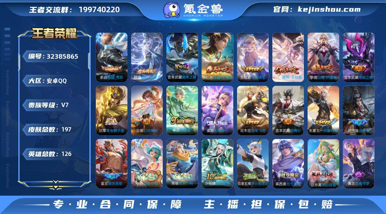 可二次【特价出售/店主推荐】:安卓Q-V7-最强王者段位-126英雄-197皮肤-1典藏皮肤-1珍品传说-1星元-12传说-59史诗 【英雄全皮】:孙权全皮,空空儿全皮,影全皮 【荣耀典藏】:李白鸣剑曳影 【珍品传说】:嫦娥器灵落星盏 【传说皮肤】:狄仁杰神骥赴朔漠,王昭君长夜焕生,虞姬愿照岁时盈,云缨幻光神枪,桑启鸣野蒿,宫本武藏惊梅引,东皇太一灼幽烈阳,虞姬无限倾心,李信山海炽霜斩,达摩黄金狮子座,花木兰冠军飞将,宫本武藏地狱之眼 【限定皮肤】:虞姬夏日便利店,姜子牙天穹之誓,狄仁杰阴阳师,赵云皇家上将,孙尚香蔷薇恋人,元歌无心,甄姬游园惊梦,马可波罗山海玄木吟,狄仁杰魔术师,狄仁杰万华元夜,项羽海滩派对,韩信飞衡,李元芳匿光侦查者,虞姬无限倾心,雅典娜黎明之约,苏烈千军破阵,裴擒虎李小龙,裴擒虎擒涛扼浪,李信山海炽霜斩,嫦娥拒霜思,嫦娥暖冬兔眠,鲁班大师探海日志,桑启海盐诗旅,暃星界游侠,艾琳流音漫舞,司空震地狱燃心,阿古朵江河有灵,张良古海寻踪,蒙犽百解令,鬼谷子天穹祈灯,沈梦溪龙舞盛年,鲁班七号蔬乡物语,李元芳蔬乡物语,刘邦剑破天穹,周瑜熔金海岸 【年限皮肤】:韩信飞衡,李信山海炽霜斩,马可波罗山海玄木吟,...