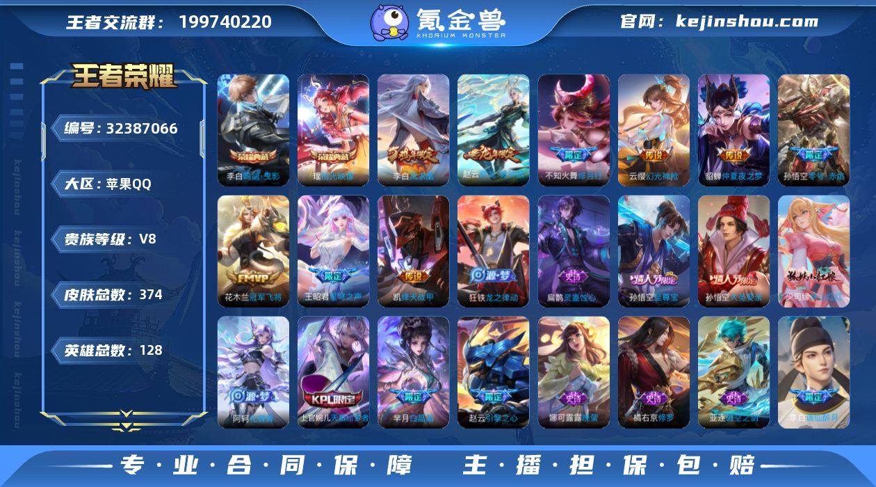 [17654077]V8 2典藏 1珍品传说 13传说 128英雄 374皮肤 可修改实名 男号 【英雄全皮】少司缘全皮,敖隐全皮,空空儿全皮,孙权全皮,蚩奼全皮,戈娅全皮,盾山全皮,刘邦全皮,钟馗全皮,影全皮,大禹全皮 【稀有英雄】敖隐(小龙人),大司命,嬴政(始皇帝),韩信(韩跳跳),夏洛特(夏师傅),艾琳,橘右京(橘子),娜可露露(鸟人),不知火舞,赵云,金蝉(唐僧),戈娅 【荣耀水晶】拾光映像(瑶典藏),鸣剑·曳影 【珍品传说】怪盗基德 【传说皮】乘龙·铭钟鼎(赵云年限),幻光神枪,神树通天,零号·赤焰,仲夏夜之梦(大飞蛾),末日机甲-孙尚香(绿蚂蚱),冠军飞将,绛天战甲(鸡嘴战神) 【珍宝阁皮】锁墨魂,优雅恋人,女武神 【赛季/战令皮】噬灭天穹(s37),古海寻踪(s33),星界游侠,海盐诗旅(s30),擒涛扼浪(s31),探海日志(s32),驭风魔法,玲珑珍味,顽趣-梦奇,剑破天穹(s35),天穹祈灯(s34),天穹之誓(s36),暖冬·兔眠,御霄(s14),御旌(s15),御銮(s16),朔风刀(s17),混沌棋(s18),疑决卦(s19),醍醐杖(s20),原初探秘者(s21),万华元夜(s22),演武夺筹(s23),驱傩正仪(s24),猎兽之王,白昼王子,朔望之晖,蓝屏警告,神迹守卫-钟馗,狮舞东方,赤莲之焰,驯魔猎人,星空之诺,银河之约,夺宝奇兵,迷踪丽影,西部大镖客-猪八戒,暗影游猎(游乐娃...