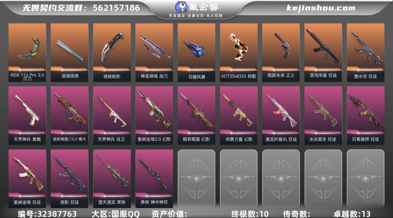 w4568【精品号】堕天冥驹 显卡爪刀 日冕狂徒 神中莽侠 EDG标配 盖亚狂徒 冰点狂徒 日曜遗器 紫金狂徒 天界鬼魅 班若撩犬 侦查幻影 诡秘军刀 威龙之刃 班若幻影 混沌狂徒 紫金幻影 天界戍卫 神圣战刀 掠夺狂徒 西部正义 塑水狂徒 库存:31370 剩余VP:62剩余R点:5 段位:铂金1
