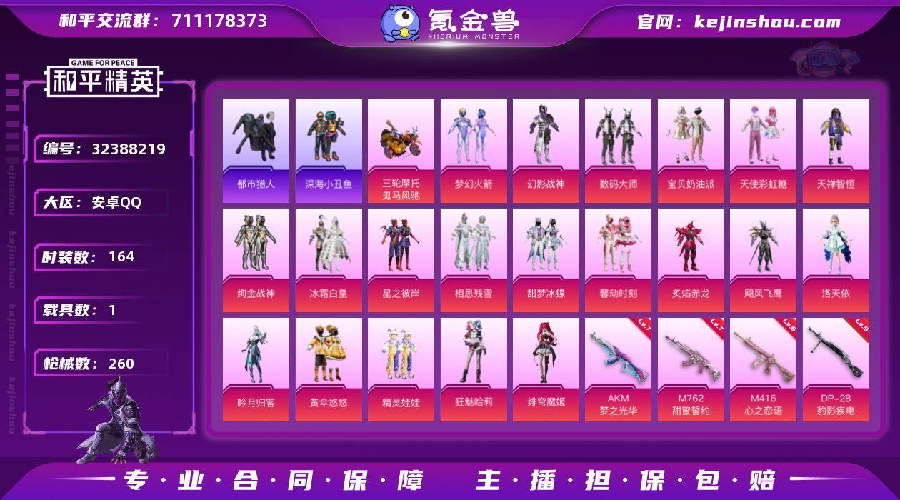 J2431 精品 20粉 15特 1载具 星之彼岸 小丑女 绯穹魔姬 新101 洛天依 炫金战神 幻影战神 小丑女 浪漫天命 都市猎人 深海小丑鱼 黄伞悠悠 满级梦之光华 安卓 手Q-20粉装-15特效枪-1载具-4粉色飞行器-86634热力值-14王牌印记-164套装-260枪皮 【热门品类】:粉装-梦幻火箭,套装-浪漫天命,套装-都市猎人,套装-深海小丑鱼,套装-小丑鱼,角色-军刀雅典娜,套装-金羽特工,套装-忍者信条,套装-龟仙人,套装-暗影哥特 【粉色套装】:粉装-幻影战神,粉装-数码大师,粉装-宝贝奶油派,粉装-天使彩虹糖,粉装-梦幻火箭,粉装-天禅智恒,粉装-绚金战神,粉装-冰霜白皇,粉装-星之彼岸,粉装-相思残雪,粉装-甜梦冰蝶,粉装-馨动时刻,粉装-炙焰赤龙,粉装-飓风飞鹰,角色-洛天依,粉装-吟月归客,粉装-黄伞悠悠,粉装-精灵娃娃,角色-狂魅哈莉,角色-绯穹魔姬 【粉色枪皮等级】:AKM-梦之光华(七级),SCAR-L-青春物语(五级),M416-心之恋语(六级),GROZA-镜光银凌(五级),AUG-暖羊咩咩(五级),AUG-圣斗士星矢(五级),M762-甜蜜誓约(七级),M762-激战未来(二级),UMP45-萌骑冒险(四级),AKS-74U-森灵之息(五级),Kar98K-巳巳如意(五级),Mk14-福马献瑞(五级),SLR-暗夜玫瑰(二级),D...