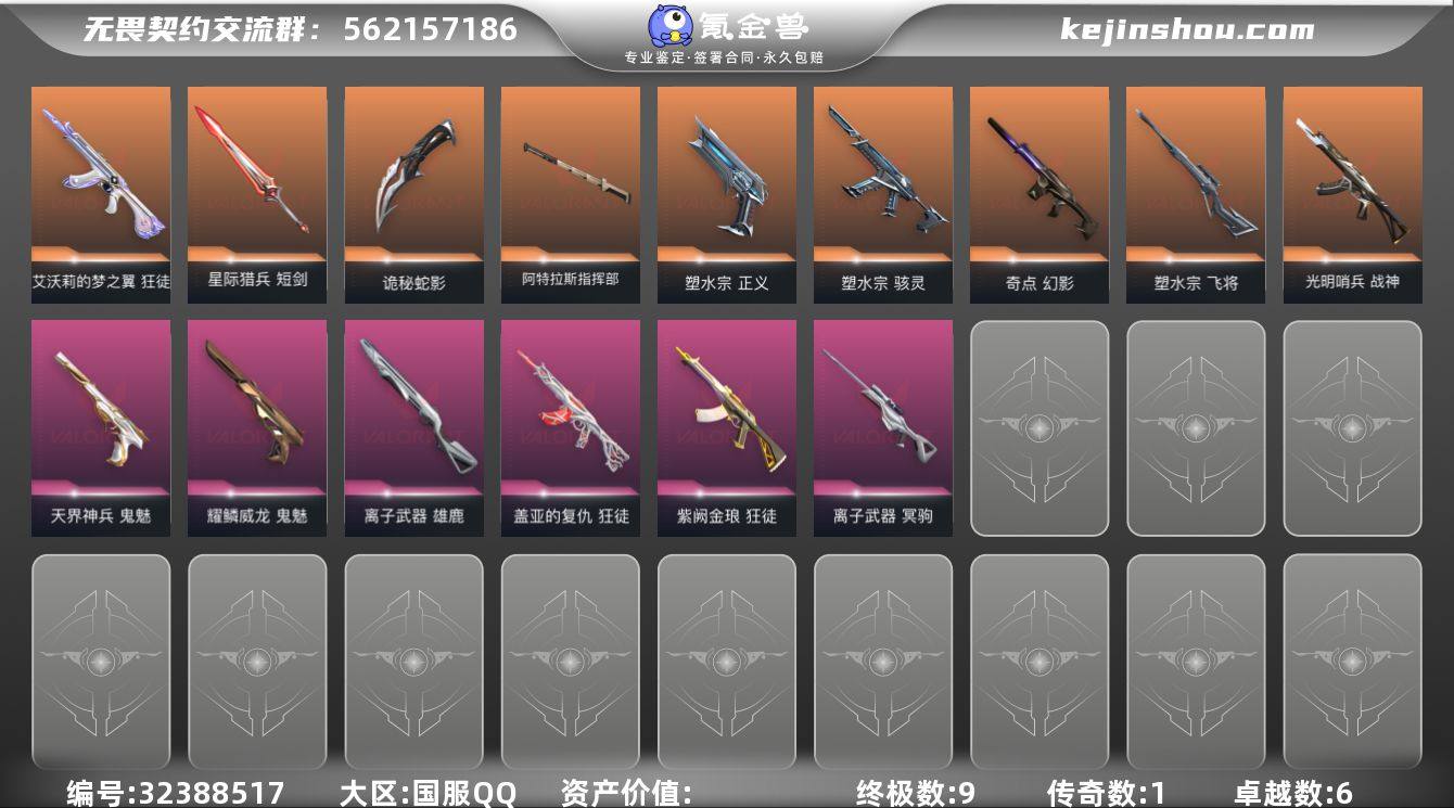 【套装】:光荣异象套装【英雄】:幻棱,炼狱,维斯,暮蝶,钛狐,壹决,铁臂,捷风,雷兹,幽影,不死鸟,贤者,猎枭,蝰蛇,零,芮娜,奇乐,尚勃勒,霓虹,斯凯,夜露,星礈,K/O,海神,盖可,黑梦,钢锁【近战武器】:近战武器-光荣异象 歧途,近战武器-RGX 11z Pro//3.0 爪刀,近战武器-诡秘蛇影 军刀,近战武器-神圣领域 战刀,近战武器-日耀风暴 遗器,近战武器-阿特拉斯指挥部 甩棍【狂徒】:狂徒-艾沃莉的梦之翼,狂徒-混沌序曲,狂徒-奇点//2.0,狂徒-虚空遗器,狂徒-光荣异象,狂徒-堕天遗武,狂徒-掠影,狂徒-盖世英雄,狂徒-离子武器//2.0,狂徒-诡秘蛇影,狂徒-神罚//2.0【幻影】:幻影-电音光谱,幻影-异鳞魔蛇,幻影-神圣领域,幻影-末日之翼,幻影-电音光谱【戍卫】:戍卫-天界神兵,戍卫-月球哨兵,戍卫-折光棱晶【獠犬】:獠犬-神圣领域【冥驹】:冥驹-千灵华绽,冥驹-光荣异象,冥驹-星云暗涌【飞将】:飞将-塑水宗,飞将-末日之翼【莽侠】:莽侠-诡秘蛇影,莽侠-月球哨兵【战神】:战神-神圣领域【奥丁】:奥丁-末日之翼【判官】:判官-光荣异象,判官-诡秘蛇影【雄鹿】:雄鹿-月球哨兵【骇灵】:骇灵-星云暗涌【蜂刺】:蜂刺-星云暗涌,蜂刺-折光棱晶...