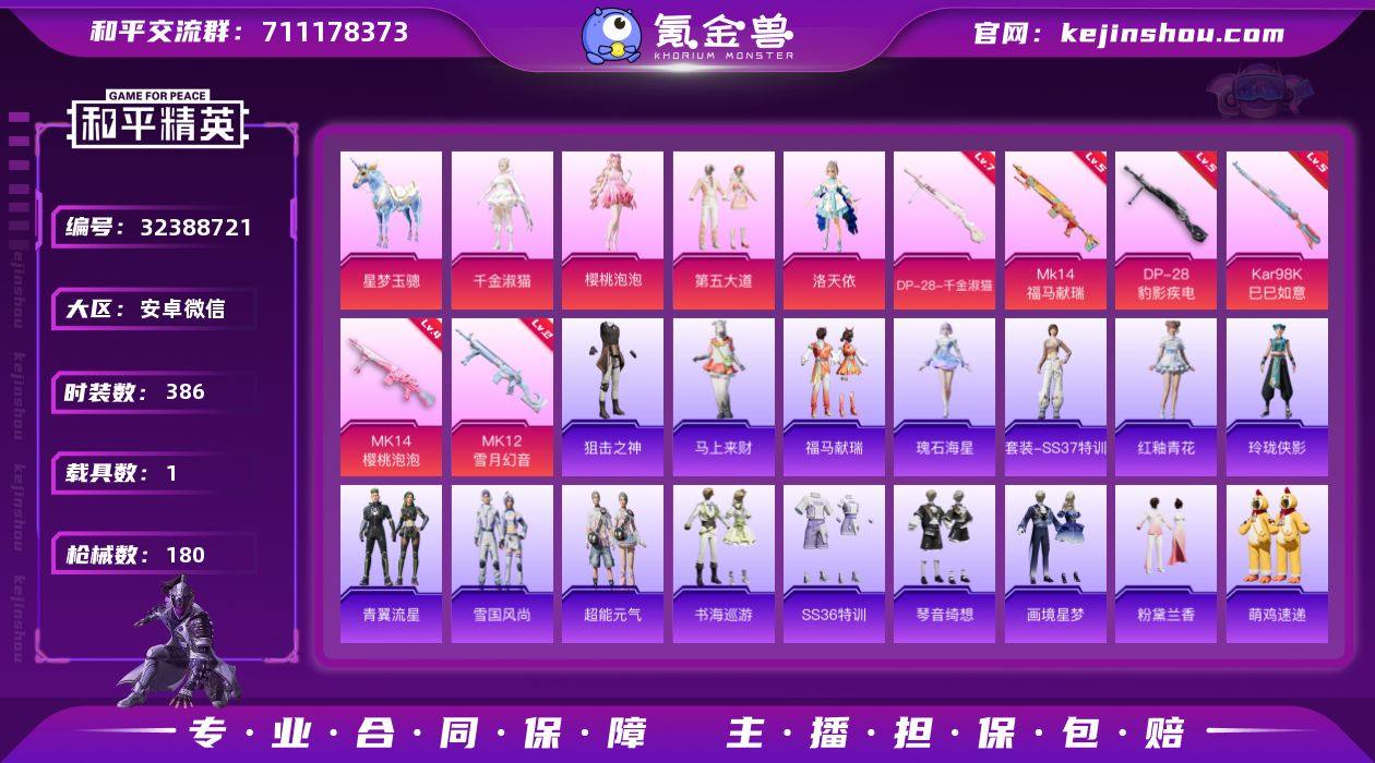 这个号的装备虽不是很多,但却都属于吸睛爆款,千金淑猫,樱桃泡泡,第五大道,洛天依,还有小转盘的晶辉守护(眼罩爆火)、粉雾星云,听雨铃兰等,载具星梦玉骢,飞行器有灵猫魔法师和刚上线的云梦轻舟,还有绝版的绿洲里的小裙子,相比其他号,有的装备虽多,却大部分压箱底,这个号里的衣服几乎没有压箱底,都可美美上身,从载具飞行器爆款衣服皆有,号里还有1000多点券,而且此号价格优惠,极其合适入手