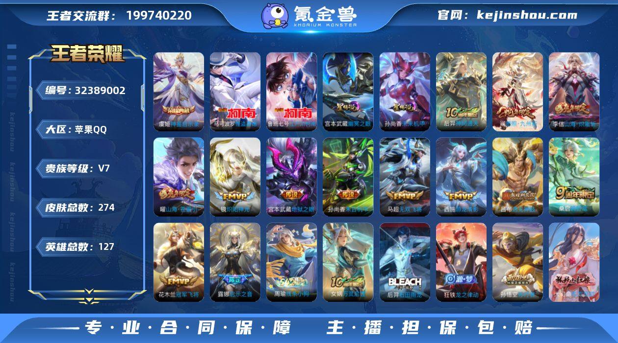 【精氪小号·金标后羿·怪盗基德·江户川柯南·神鉴启示录·遇见神鼓·山海炽霜斩·山海苍雷引·无双飞将·启示之音·游龙清影·炽阳神光·愿照九州拓·美猴王·寅虎御盾·山海碧波行·山海玄木吟·可二次】YXw19520-苹果Q-127英雄-274皮肤-12王者印记-220铭文-贵族积分3w【贵族7】【1典藏·2珍品·2星传说·13传说·3按键】【因赛季更新游戏段付以上号为准!】 【英雄全皮】:孙权全皮 【荣耀典藏】:虞姬神鉴启示录 【珍品传说】:鲁班七号江户川柯南,马可波罗怪盗基德 【金标】:金标后羿 【星元皮肤】:孙尚香未来机甲,宫本武藏幽冥之眼 【传说皮肤】:后羿神树通天,澜愿照九州拓,桑启鸣野蒿,吕布遇见神鼓,曜山海苍雷引,李信山海炽霜斩,马超无双飞将,露娜启示之音,西施游龙清影,镜炽阳神光,花木兰冠军飞将,孙尚香末日机甲,宫本武藏地狱之眼 【限定皮肤】:蒙犽顽岩魄,蔡文姬夏日便利店,大乔绒语心约,虞姬夏日便利店,姜子牙天穹之誓,狄仁杰阴阳师,廉颇寅虎御盾,赵云皇家上将,嬴政优雅恋人,嬴政白昼王子,庄周高山流水,钟无艳超时空战士,扁鹊奇幻香踪,白起夜都怪侠,芈月幻夜卜梦,吕布遇见神鼓,元歌无心,甄姬游园惊梦,甄姬落雪兰心,马可波罗山海玄木吟,狄仁杰魔术...