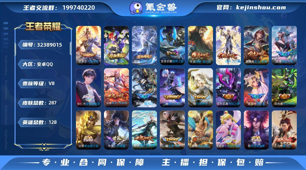 AHC60032,,,安卓Q-V8-最强王者段位-128英雄-287皮肤-1典藏皮肤-2珍品传说-32传说-93史诗 【英雄全皮】:夏洛特全皮,司空震全皮,影全皮,海诺全皮 【荣耀典藏】:花木兰九霄神辉 【珍品传说】:嫦娥器灵落星盏,孙策时之奇旅 【传说皮肤】:关羽神骥镇沧海,司空震愿照山河定,云缨幻光神枪,桑启鸣野蒿,夏侯惇霜北刀,铠冥王哈迪斯,亚连落雪白狼,吕布曦玄引,孙策乘龙淬吴钩,赵云乘龙铭钟鼎,澜逐花归海,狄仁杰夜礼服假面,王昭君永恒水手月亮,吕布遇见神鼓,宫本武藏惊梅引,诸葛亮鹤羽星尊,澜电玩雷克斯,公孙离记忆之芯,夏洛特浮生妄,李白诗剑行,狄仁杰神器狴犴令,后羿无尽星芒,裴擒虎寅虎赤拳,赵云淬星耀世,镜炽阳神光,虞姬启明星使,曜云鹰飞将,李信一念神魔,干将莫邪久胜战神,达摩黄金狮子座,孙尚香末日机甲,宫本武藏地狱之眼 【限定皮肤】:夏侯惇霜北刀,铠冥王哈迪斯,暃埋骨钱,蔡文姬夏日便利店,大乔绒语心约,虞姬夏日便利店,姜子牙天穹之誓,狄仁杰阴阳师,赵云皇家上将,赵云引擎之心,嬴政优雅恋人,钟无艳超时空战士,扁鹊奇幻香踪,白起夜都怪侠,芈月白晶晶,吕布遇见神鼓,元歌无心,夏侯惇匿光决锋者,甄姬落雪兰心,马可波罗...