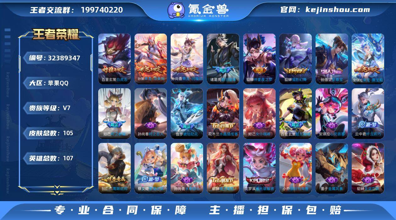 V7 6传说 107英雄 105皮肤 可修改实名 女号 【稀有英雄】韩信(韩跳跳),不知火舞,赵云,金蝉(唐僧),戈娅 【传说皮】乘龙·淬吴钩(孙策年限),乘龙·问璇玑(孙尚香年限),仲夏夜之梦(大飞蛾),猫影幻舞,鹤羽星尊 【赛季/战令皮】海盐诗旅(s30),擒涛扼浪(s31),探海日志(s32),天穹祈灯(s34),御銮(s16),混沌棋(s18),疑决卦(s19),醍醐杖(s20),原初探秘者(s21),万华元夜(s22),演武夺筹(s23),驱傩正仪(s24),神迹守卫-墨子,大漠名商(s28),云中旅人(s29) 【史诗皮】琥珀纪元伽罗,乘龙·聚宝船(安琪拉年限),超元猎域,遇见神鹿,电玩·兔顽号,匿光破解者,猫狗日记-大乔,时之恋人-孙尚香,女仆咖啡,水果甜心,心灵骇客,舞动绿茵,诗语江南,纤云弄巧,繁星吟游(呼啦呼啦),缤纷独角兽,水晶猎龙者,唤灵魅影,金属风暴,圣诞恋歌,鹰眼统帅,魅力维加斯 【限定皮】至尊宝,白虎志(电光耗子),时之彼端,五谷丰年,霸王别姬-虞姬 【普通皮】神迹守卫,劲辣红锅,亚瑟鸿运当头,刘备异域游侠,太极少年,零食大作战,妄想特派,鬼谷子天穹祈灯(S34),威尼斯狂欢,万事如意,花好人间,归虚梦演-西施,海滩派对,皇家上将,魔术师,守护之力,缤纷绘卷,圆桌骑士(盾山),黄金武士,鲨炮海盗猫,红桃皇后,教廷特使,阴阳师,兔女郎,死亡骑士,...