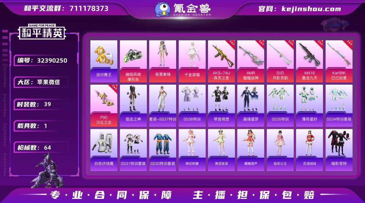 【金鞋M4墨龙九天6特效枪2粉装1载具】 苹果V区-21919热力值-39套装-64枪皮 【1载具】 幽焰风驰摩托车【2稀有】 派对舞王(金靴子) 派对舞王【2粉装】 极意拳锋 角色-千金淑猫【6特效枪】 M416-墨龙九天(3级) P90-沙丘之主(3级) AKS-74U-森灵之息(5级) AMR-智耀战神(4级) SVD-月影灵韵(5级) Kar98K-巳巳如意(5级)【71热门】 暗影哥特(红眼罩) 白色伏地魔 S1897-糯团青竹 MK20-H-樱桃泡泡 平底锅-画境星梦 MG-36-薄荷星砂 恋语绒绒 SS34特训 蓝冰羽 临安公主 破片手榴弹-爆破雪人 SS30特训 ACE32-冰晶雪宝 青团波波 俏兔智灵 鱼渊荷华 光矢逐梦 糖糖葫芦 萌萌史莱姆 PKM-啾咪啾咪 燕燕于飞 SS31特训 SS32特训 巳巳如意 紫幽梦 棉花软糖 MG3-霓彩脉冲 SS36特训 异域银装 智谋强哥 粉恋花 战术大师 爆炸猎弓-雪月幻音 狙击之神 SCAR-L-净心行者 PKM-紫幽梦 撬棍-沙丘之主权杖 ACE32-画境星梦 M1加兰德-画境星梦 琴音绮想 破片手榴弹-巳巳如意 Mk14-紫幽梦 S686-千金淑猫 DBS-月影灵韵 SS35特训 S1897-紫幽梦 蜜獾-糖糖葫芦 平底锅-糖糖葫芦 P92-紫幽梦 野牛-燕燕于飞 AUG-月影灵韵 UMP45-糖糖葫芦 UZI-月影灵韵 M249-萌萌史莱姆 MK20-H-糖糖葫芦 平底锅-紫幽梦 SPAS-12-燕燕于飞...