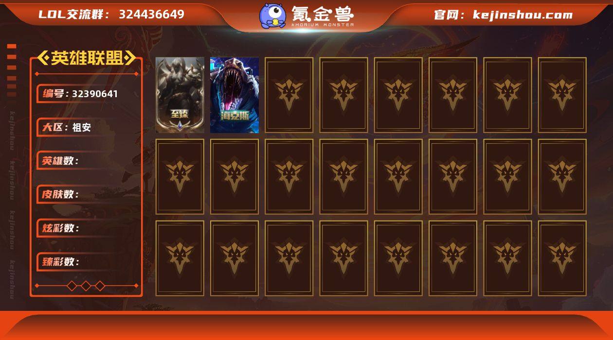 1终极 7神话 27限定 21传说 51史诗 199皮肤 57炫彩 167英雄 可二次 可修改实名