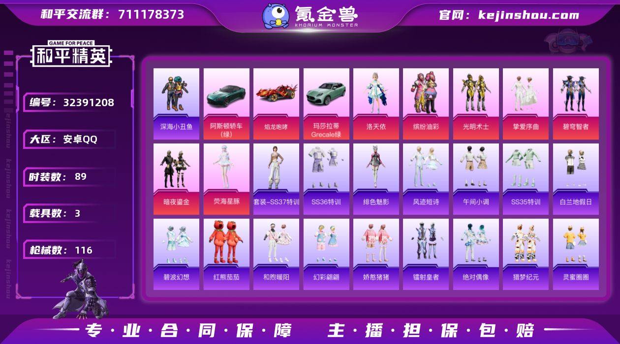 【kyhp989】苹果 手Q-7粉装-10特效枪-2载具-6粉色飞行器-81879热力值-15王牌印记-181套装-261枪皮 【热门品类】:绝对防御上衣,套装-浪漫天命,套装-都市猎人,套装-深海小丑鱼,套装-龟仙人,角色-8号机,角色-Mark.06 【粉色套装】:角色-洛天依,粉装-未来歌姬,粉装-莲影清波,粉装-傲傲奶龙,角色-千金淑猫,角色-凤凰座 一辉,角色-冷漠罗丽 【粉色枪皮等级】:AKM-绿萝繁花(五级),SCAR-L-锦绣绵绵(五级),M416-风花雪月(七级),M416-电玩时刻(五级),GROZA-镜光银凌(五级),UMP45-量子极限(五级),Kar98K-巳巳如意(五级),Mk14-甜梦熊击(五级),Mk14-福马献瑞(一级),DP-28-豹影疾电(五级) 【粉色载具】:兰博基尼Aventador SVJ(翡翠绿),合金龙骨(蓝) 【粉色枪皮】:AKM-绿萝繁花,SCAR-L-锦绣绵绵,M416-风花雪月,M416-电玩时刻,GROZA-镜光银凌,UMP45-量子极限,Kar98K-巳巳如意,Mk14-甜梦熊击,Mk14-福马献瑞,DP-28-豹影疾电 【粉色飞行器】:炫彩糖果飞行器,梦幻火箭飞行器,镜光幻境飞行翼,冠军兔兔飞行器,灵猫魔法师飞行器,极意拳锋飞行器 【粉色降落伞】:梦幻火箭降落伞,洛神天依降落伞,恐龙拽拽降落伞,第五大道降落伞,玉鳞金羽降落伞,闲梦青缨降落伞,炫光之旅降落伞,圣堂之誓降落伞,墨龙九天降落伞,初号机 觉醒Ver.降落伞,月影灵韵降落伞,星穹咏叹调降落伞,绯穹魔姬降落伞,炫彩糖果降落伞 【稀有套装】:套装-龟仙人,套装-绒宝小鹅,套装-巳巳如意,套装-雪国风尚,套装-马上有钱,套装-雏菊兔兔,套装-萝兰蝴蝶,套装-小熊娃娃,套装-糖糖葫芦,套装-青团波波,套装-棉花软糖,角色-都市丽猫,角色-怀庆长公主,套装-燕燕于飞,套装-鱼渊荷华,套装-新风雅兰,套装-粉恋花,套装-紫幽梦,套装-蓝冰羽,角色-猎影月神,套装-星渊小夜曲,套装-彩虹兔,套装-云朵鹅,...