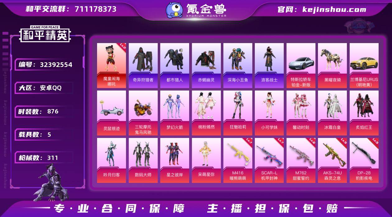 【特价出售】hs63139安卓V-1载具3粉装9特效枪16热门149套装200枪皮 60551热力值 12印记 历史卓越王牌18星 【1载具】 仰望U7先锋版(阿盖尔紫) 【3粉装】 梦幻火箭 樱桃泡泡 幻彩电音 【9特效枪】 M416-五爪金龙 (7级) AKS-74U-森灵之息 (5级) Kar98K-巳巳如意 (5级) DP-28-豹影疾电 (5级) AUG-暖羊咩咩 (5级) Mk14-樱桃泡泡 (4级) AMR-智耀战神 (7级) Mk14-福马献瑞 (4级) ACE32-萌骑漫游 (5级) 【16热门】 奇迹天团 青涩年华 雪山精英 潮萌小黄鸭 软萌银虎 奇迹天团 大橘为重 罗小黑 NV战队服 暗影哥特 机械英豪 破蛋小黄鸡 风华少年志 白月香洋装 黑色刀锋 不夜海上花 【1头盔】 智能音符头盔 【2背包】 放客神游背包 神秘黑猫背包