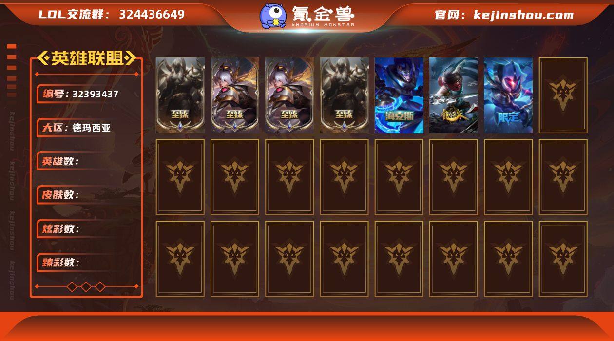 [17660241]1终极 7神话 50限定 36传说 125史诗 452皮肤 113炫彩 171英雄 可二次 可修改实名