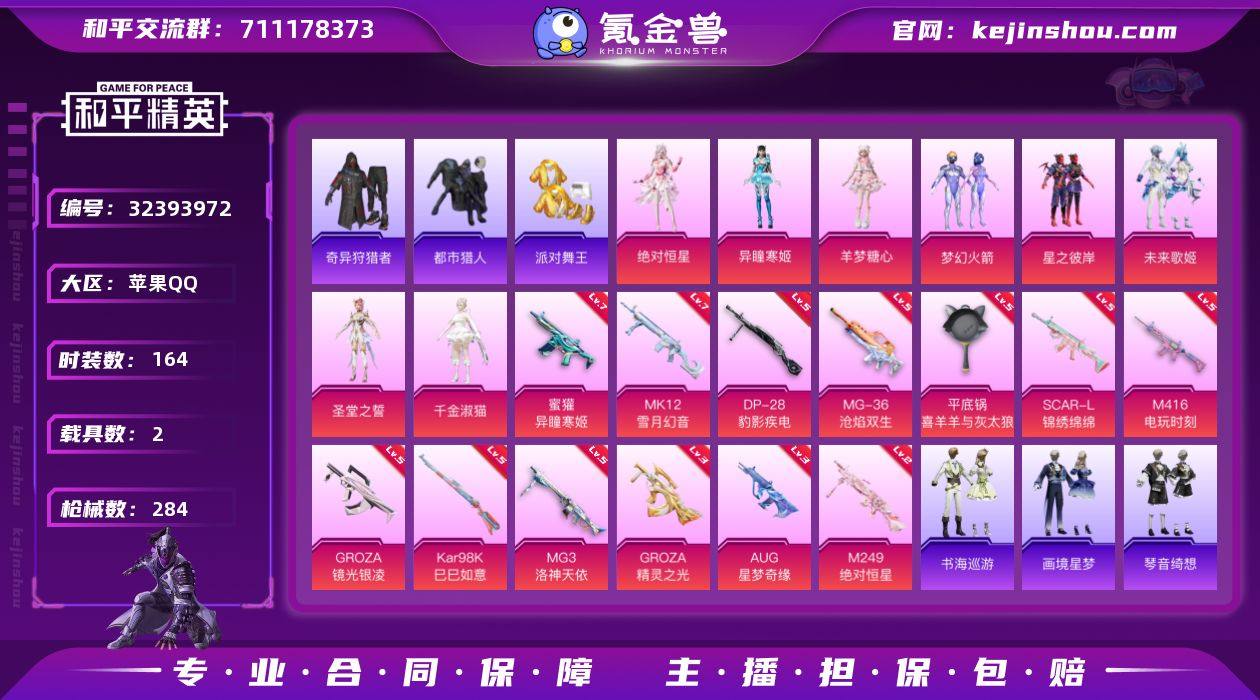TD2631513 苹果 手Q-9粉装-16特效枪-2载具-8粉色飞行器-90484热力值-19王牌印记-164套装-284枪皮 【热门品类】:粉装-梦幻火箭,套装-浪漫天命,套装-都市猎人,套装-派对舞王,套装-奇异狩猎者,套装-龟仙人,套装-暗影哥特 【粉色套装】:角色-绝对恒星,粉装-梦幻火箭,粉装-星之彼岸,粉装-未来歌姬,角色-圣堂之誓,角色-千金淑猫,角色-羊梦糖心,角色-异瞳寒姬,角色-辉云木星 【粉色枪皮等级】:AKM-暮色玫影(三级),SCAR-L-锦绣绵绵(五级),M416-电玩时刻(五级),GROZA-精灵之光(三级),GROZA-镜光银凌(五级),AUG-星梦奇缘(三级),蜜獾-异瞳寒姬(七级),AKS-74U-森灵之息(五级),Kar98K-巳巳如意(五级),Mk14-福马献瑞(四级),MK12-雪月幻音(七级),M249-绝对恒星(二级),DP-28-豹影疾电(五级),MG3-洛神天依(五级),MG-36-沧焰双生(五级),平底锅-喜羊羊与灰太狼(七级) 【粉色载具】:暮色幽蹄,九霄玄鹿 【粉色枪皮】:AKM-暮色玫影,SCAR-L-锦绣绵绵,M416-电玩时刻,GROZA-精灵之光,GROZA-镜光银凌,AUG-星梦奇缘,蜜獾-异瞳寒姬,AKS-74U-森灵之息,Kar98K-巳巳如意,Mk14-福马献瑞,MK12-雪月幻音,M249-绝对恒星,DP-28-豹影疾电,MG3-洛神天依,MG-36-沧焰...