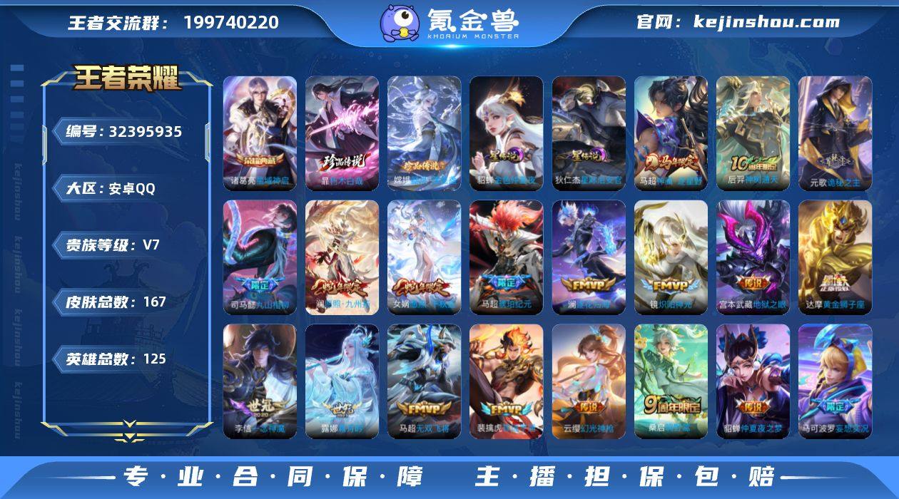安卓Q-V7-最强王者段位-125英雄-167皮肤-1典藏皮肤-2珍品传说-20传说-55史诗 【英雄全皮】:元歌全皮,司马懿全皮,空空儿全皮,影全皮 【荣耀典藏】:诸葛亮星域神启 【珍品传说】:暃朽木白哉,嫦娥器灵落星盏 【传说皮肤】:马超神骥逐星野,后羿神树通天,元歌诡秘之主,司马懿九山相柳,女娲愿照千秋盛,澜愿照九州拓,云缨幻光神枪,裴擒虎祥瑞亨通,桑启鸣野蒿,马超琥珀纪元,澜逐花归海,露娜霜月吟,马可波罗妄想实况,马超无双飞将,镜炽阳神光,李信一念神魔,达摩黄金狮子座,貂蝉仲夏夜之梦,宫本武藏地狱之眼,狄仁杰超时空战士 【限定皮肤】:蒙犽顽岩魄,姜子牙天穹之誓,杨戬破阵退雄兵,狄仁杰阴阳师,赵云皇家上将,元歌云间偶戏,元歌无心,马可波罗暗影游猎,马可波罗妄想实况,狄仁杰魔术师,项羽海滩派对,刘备百相守梦,百里玄策原初追逐者,裴擒虎李小龙,西施玲珑珍味,蒙犽狂想玩偶喵,鬼谷子天穹祈灯,马超琥珀纪元,姬小满妄想食味,刘邦剑破天穹,上官婉儿群星魔术团,镜青焰无极,项羽苍威无极 【年限皮肤】:女娲愿照千秋盛,澜愿照九州拓 【赛季限定】:鬼谷子天穹祈灯,刘邦剑破天穹,姜子牙天穹之誓,东皇太一噬灭天穹,太乙真人谧流熔炉...