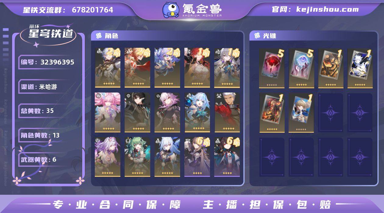 【崩坏·星穹铁道】冒险等级:70,男主,五星数量:19,五星角色:白露 * 2命,万敌 * 2命,白厄 * 2命,布洛妮娅 * 1命,姬子 * 1命,遐蝶,镜流,藿藿,Archer,刻律德菈,长夜月,丹恒·腾荒,昔涟__五星光锥:记一位星神的陨落 * 5精,记忆永不落幕 * 5精,制胜的瞬间,血火啊,燃烧前路,黎明恰如此燃烧,理想燃烧的地狱__四星角色:阿兰 * 6命,娜塔莎 * 6命,黑塔 * 6命,停云 * 6命,三月七 * 6命,佩拉 * 6命,玲可 * 6命,雪衣 * 6命,丹恒 * 5命,驭空 * 5命,加拉赫 * 5命,貊泽 * 4命,希露瓦 * 4命,青雀 * 4命,桂乃芬 * 2命,艾丝妲 * 1命,桑博 * 1命,寒鸦 * 1命,卢卡,米沙21白厄队,21万敌,记忆队