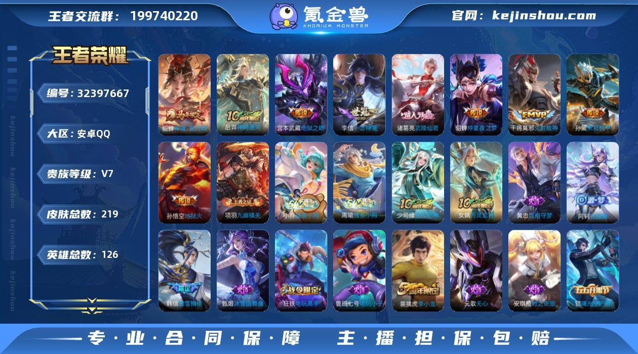 安卓Q-V5-最强王者段位-126英雄-144皮肤-8传说-40史诗【传说皮肤】:后羿神树通天,澜愿照九州拓,虞姬愿照岁时盈,云缨幻光神枪,桑启鸣野蒿,虞姬无限倾心,镜炽阳神光,宫本武藏地狱之眼【限定皮肤】:姜子牙天穹之誓,狄仁杰阴阳师,赵云皇家上将,孙尚香蔷薇恋人,元歌无心,达摩沙漠行僧,项羽海滩派对,程咬金演武夺筹,兰陵王金庭之子,孙悟空至尊宝,李元芳云中旅人,虞姬无限倾心,钟馗驱傩正仪,鬼谷子五谷丰年,苏烈千军破阵,百里玄策原初追逐者,裴擒虎擒涛扼浪,西施玲珑珍味,鲁班大师探海日志,桑启海盐诗旅,阿古朵江河有灵,张良古海寻踪,鬼谷子天穹祈灯,沈梦溪龙舞盛年,刘邦剑破天穹,镜青焰无极,项羽苍威无极,周瑜熔金海岸【年限皮肤】:澜愿照九州拓,虞姬愿照岁时盈【赛季限定】:程咬金演武夺筹,钟馗驱傩正仪,苏烈千军破阵,达摩沙漠行僧,兰陵王金庭之子,李元芳云中旅人,桑启海盐诗旅,裴擒虎擒涛扼浪,鲁班大师探海日志,张良古海寻踪,鬼谷子天穹祈灯,刘邦剑破天穹,姜子牙天穹之誓,东皇太一噬灭天穹,太乙真人谧流熔炉,钟馗虚灵犬护,甄姬逆浪荇歌,亚瑟荣光之誓,百里玄策原初追逐者,牛魔星界战将,项羽九幽镇关【战令限定】:西施玲珑珍味,镜青焰无极,项羽苍威无极,百里守约百相守梦,老夫子百相守梦,孙膑茶境仙,马超访茗客,周瑜线条小狗,小乔线条小狗【史诗皮肤】:周瑜线条小狗,小乔线条小狗,项羽九幽镇关,黄忠百相守梦,后羿石田雨龙,扁鹊灵蛊蚀心,狂铁龙之律动,阿轲化蝶舞,弈星万物之道,孙膑茶境仙,牛魔星界战将,百里守约百相守梦,镜青焰无极,阿古朵江河有灵,元歌无心,鬼谷子五谷丰年,司马懿暗渊魔法,沈梦溪月团寄思,杨戬天秀启明,百里玄策原初追逐者,橘右京修罗,程咬金功夫厨神,李元芳逐浪之夏,蔡文姬舞动绿茵,铠曙光守护者,百里...