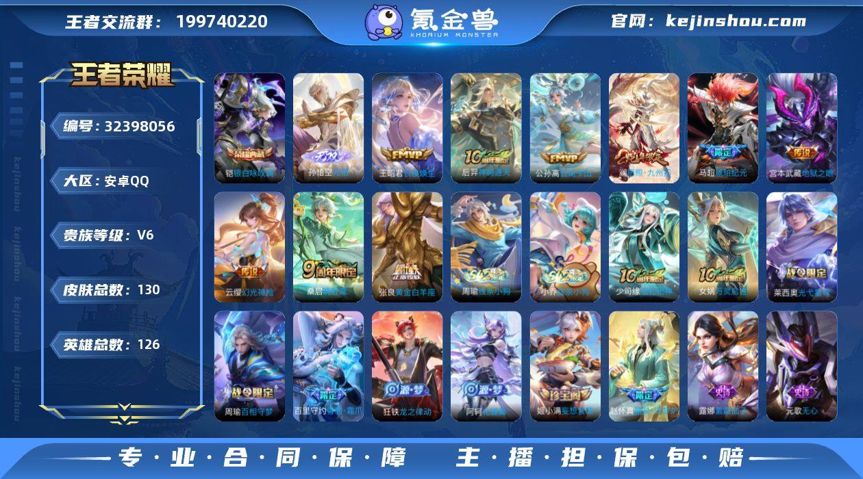 【XY788】贵族6/皮肤130/典藏1/传说9/史诗36/英雄126/敖隐全皮/银白咏叹调/无相/长夜焕生/神树通天/云诺千山/愿照·九州拓/幻光神枪/鸣野蒿/琥珀纪元马超/黄金白羊座/地狱之眼/蔡文姬夏日便利店/阴阳师/皇家上将/无心/魔术师/海滩派对/云中旅人(s29)/五谷丰年/大漠名商(s28)/擒涛扼浪(s31)/探海日志(s32)/海盐诗旅(s30)/古海寻踪(s33)/鬼谷子天穹祈灯(S34)/妄想食味/苍威无极/噬灭天穹(s37)/谧流熔炉/虚灵犬护/荣光之誓/茶境仙/访茗客/百相守梦-周瑜/百相守梦-孙策/光弋星穹/往忆晖光/线条小狗-周瑜/线条小狗-小乔/巫礼祀神/万灵启世/雪豹·霜爪/龙之律动/化蝶舞/器灵·浮梦炉/暗渊魔法/天秀·启明/无限星赏官/鹰眼统帅/节奏热浪/星夜王子/功夫厨神/暗隐猎兽者/水晶猎龙者/乱世虎臣/末日机甲-吕布/千年之狐/幽灵船长/龙骑士/魅力维加斯/水果甜心/偶像歌手/圣诞恋歌/未来纪元-赵云/紫霞仙子/班班快跑/线条小狗-妲己/线条小狗-桑启/糖果风暴/溯影追猎/极光幻客/鹤鸣心笺/命运加冕/布丁狗之约/灵野札记/春野闲踪/浪漫序章/玫蓝誓约/景韶洛都/星梦巡礼/雪境奇遇-西施/铁骨偃魂/苍林狼骑/逐霄战戟/雾都夜雨/时空谍影/太极少年/牛运亨通/危途狂花/唤灵魔甲/丁香结/虹云星官/掌控之力/纽...