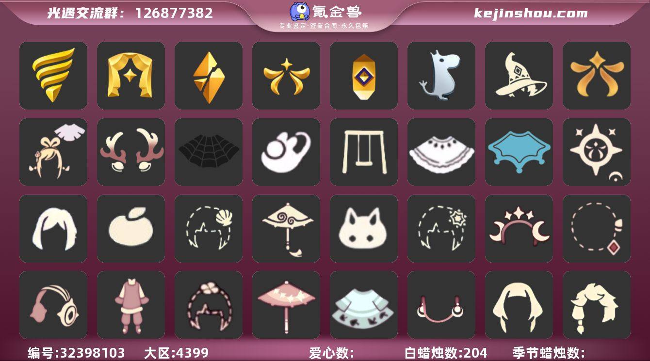 账号类型: 邮箱账号 季节已毕业: 表演季,破晓季,欧若拉季,夜行季,追忆季,归巢季,九色鹿季,筑巢季,二重奏季,姆明季,彩染季,青鸟季,双星季 完成地图: 晨岛,云野,雨林,霞谷,暮土,禁阁 珍稀物品: 白枭,透明蝶翼斗,彩虹围巾 礼包: 绊爱,运动鞋,餐桌,奔跑发型,橘子,贝壳,兔子,水母,星月头饰,彩虹耳钉,四叶草,日光耳环,满月耳坠,向日葵连衣裙,小狗周年发饰,青衫落拓礼包 裤子: 武士裤,背带裤,搓澡巾,妮妮裙子,蓝绿裤,飞天裤,筑巢季·裤子,青鸟尊贵蓬头裤子 面具: 夜行毕业面具,黄眉企鹅面具,辉光羚羊面具 面饰: 红耳机,黑框眼镜,青鸟毕业面饰 项链: 围巾 发型: 归巢毕业发型,若笠,虚荣,留辫蘑菇头,飞天盘发 头饰: 平顶帽 斗篷: 海洋斗,绿芽,粉红绒毛斗篷,遥鲲斗篷,燕尾斗篷,冥龙斗篷,彩染围巾斗篷,青鸟毕业斗篷 配饰: 雨伞,筑巢季·小手办,高音钢琴,姆明抱枕,小红伞,相机,二重奏挂画,鲲灯 亮点: 【优质装备】:表演季,白枭(帝企鹅发),武士裤,破晓季,透明蝶翼斗,欧若拉季(欧若拉),归巢毕业发型(五塑彩羽发),筑巢季·小手办(光之子试衣),高音钢琴(白色高脚钢琴),夜行季,追忆季,妮妮裙子(妮妮长裙),姆明抱枕,小红伞(姆明红伞)(姆明大伞),相机(季卡相机),彩虹围巾(五塑彩带斗),归巢季,九色鹿(九色鹿季),蓝绿裤(高领舞服),飞天裤(柔缎花边连)(九色鹿丝带裤),围巾(肩带),筑巢季,绊爱(绊爱斗篷)(绊爱礼包),餐桌(野餐礼包),红耳机,晨岛,云野,雨林,霞谷,墓土(暮土),禁阁,若笠(箬笠),青鸟尊贵蓬头裤子(蓝色燕尾服),二重奏季,二重奏挂画(合奏挂画),姆明季,筑巢季·裤子(设计师长袍),夜行毕业面具(棕熊面具),黄眉企鹅面具,黑框眼镜(粗框眼镜),留辫蘑菇头,粉红绒毛斗篷(绒毛斗篷),遥鲲斗篷(双翼遥鲲斗),燕尾斗篷,冥龙斗篷,鲲灯(追忆之书),辉光羚羊面具,彩染季,飞天盘发(九色鹿丸子头),青鸟季,青鸟毕业面饰(青鸟面饰),青鸟毕业斗篷(青鸟斗篷)...
