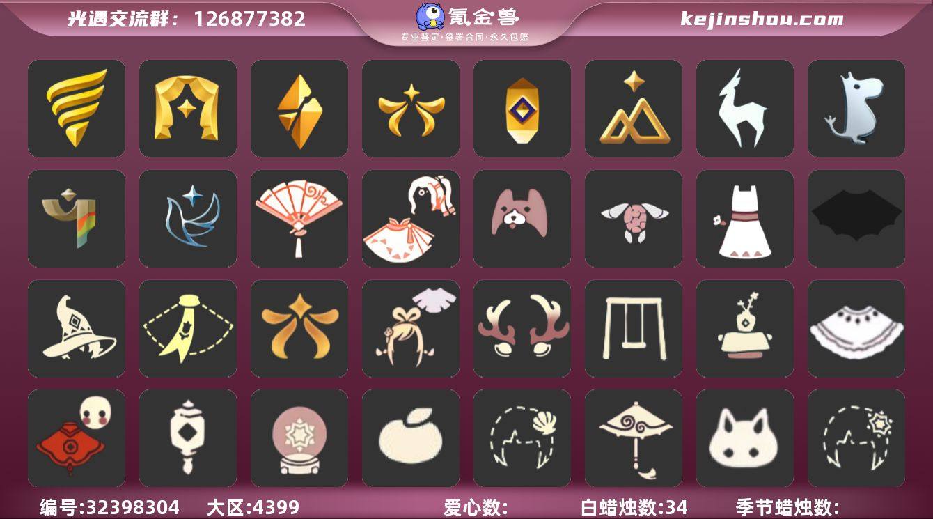 9季10翼虚荣樱花头巫师帽王子围巾透明蝶翼武士裤盲僧眼罩正太 资源:蜡烛78 爱心126 红烛20 翼10 已毕业地图:晨岛 雨林 霞谷 墓土 毕业季节:破晓季 欧若拉季 追忆季 夜行季 九色鹿季 二重奏季 青鸟季 双星季 拾光季季卡 毕业季节物品:双翼遥鲲斗篷 冥龙斗篷 留辨蘑菇头 高领舞服 透明蝶翼斗 肩带 追忆之书 棕熊面具 绒毛斗篷 九色鹿丸子头 九色鹿丝带裤 九色鹿飞天斗篷 合奏挂画 蓝色燕尾服 白色高脚钢琴 青鸟面饰 青鸟斗篷 蓝色星星光环 暮星斗篷 稀有礼包:青衫落拓礼包 大桔大利 小狗周年头饰 雪花发饰 小黄鸭发饰 王子围巾 祥云雨伞 热门裤子:背带裤 绑带舞服 奔月长袍 海洋武士裤 连衣裙 白棉裤 搓澡巾 紧身连体衣 武士裤 女仆围裙 红色流珠裙 探险燕尾服 热门面具:矮人面具 狐狸面具 黄鼠狼面具 棕熊面具 盲僧眼罩 青鸟面具 龙头 玫瑰花面具 黑脸 鸟羽面具 热门发型:海藻头 爆炸头 大胡子 雨妈 卡卡 平菇 龙骨 箬笠 公主头 粗辫 水母头 书虫 总裁头 正太 高马尾 明制帽 郡主头 斗笠 绿丝带 虚荣 圆环发辫 留辫蘑菇头 失孤 李逍遥发型 兔子头 樱花头 巫师帽 猫猫头 女巫发型 疯帽 青衫落拓发型 热门头饰:飞羽发饰 双星季面饰 大桔大利 花环 珊瑚分数 小狗周年头饰 雪花发饰 蓝色音乐会 小黄鸭发饰 红耳机 九色鹿角 探险耳机 热门斗篷:五角星斗篷 红金斗篷 黑金斗篷 白金斗篷 王子围巾 汉服斗篷 暗花斗篷 冥龙斗篷 遥鲲长斗 展翼圆环斗 透明蝶翼 小浣熊斗篷 毛绒斗 彩霞斗篷 国风斗篷 双排扣斗篷 红色探险斗 星空斗篷 星空斗篷 鸟羽斗篷 双星季斗篷 樱花斗篷 绿芽 彩虹斗篷 暗彩斗篷 青山落拓斗篷 热...