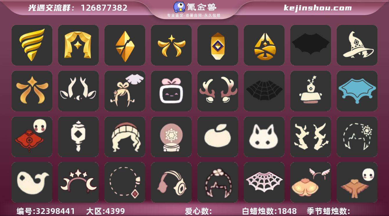 【PJ0238】 ✅官服10季白枭粗框五朔蝶翼蝙蝠巫师蛛丝欧若拉武士裤鹿角绊爱水晶球茶桌伞超多礼包✅官服邮箱 ✅最高:1.863 最矮:13.863 目前:2.730号 ✅资源:蜡烛:1848 爱心:22 翼数量:200 ✅毕业地图:霞谷 ✅毕业季节:浅海季,表演季,破晓季,欧若拉季,追忆季,夜行季半,拾光季半,归巢季,九色鹿季卡,二重奏季半, ✅稀有礼包:祥云服饰,优雅领结,多彩绒帽,巫师帽,绊爱套装,桔子,鲤跃龙门,雪花发卡,玉兔,四叶草,星月头冠,神鹿头饰,彩虹耳钉,彩虹耳机,枯角,圣诞鹿角,欧若拉之翼,新春福娃,线框斗篷,蝙蝠斗,蛛网斗篷,皮皮猫斗,蛛丝斗篷,暖冬瑞雪,文雀斗篷,飞蛾斗篷,福蛇斗篷,音韵吉他,欧若拉之声,凯旋提琴,祥云雨伞,中秋灯笼,夏日阳伞,福蛇扇,花憩茶桌,野餐桌,冥龙南瓜,皮皮猫,水晶球,大铁头 ✅热门物品:白枭,背带裤,白棉裤,搓澡巾,灯笼裤,宝宝裤,武士裤,矮人面具,黑脸,公主头,粗辫,书虫,正太,高马尾,明制帽,箬笠,花环,虚荣,樱花,猫猫头,红耳机,竖琴,雨伞