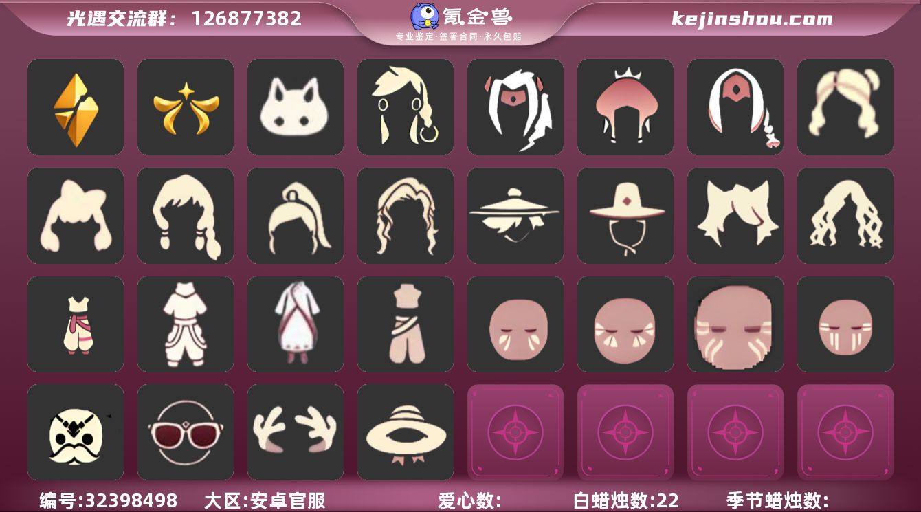 编号AY213-213 安卓邮箱无翼 可直接换绑 详情请看衣柜截图 蜡烛数:22 爱心数:0 季节已毕业:破晓季 欧若拉季 珍稀物品:透明蝶翼斗 礼包:兔子 裤子:遥鲲裙 白色背心套装 蓝绿裤 彩虹裤 面具:小胡子面具 红色条纹面具 蓝色条纹面具 白色条纹面具 绿色条纹面具 面饰:蔚蓝眼镜 发型:蝴蝶结 公主 书虫 高马尾 明制 若笠 虚荣 冥龙长辫 遥鲲长辫 皇冠水母头 吊环双辫发型 猫耳 女巫 头饰:珊瑚 太阳帽 用户最高身高:1.38071 用户最矮身高:13.38071 用户当前身高:13.05788