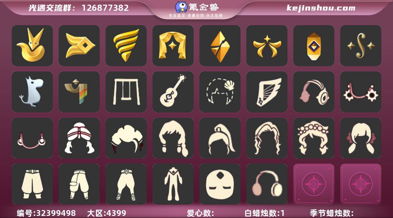 10季9翼狗头白枭透明蝶翼蝙蝠斗巫师帽武士裤小王子斗篷正太头巫术犄角绊爱彩虹帽 资源:蜡烛39 爱心15 红烛12 翼9 已毕业地图:全图毕业 毕业季节: 预言季 梦想季 集结季 小王子季 风行季 潜海季 表演季 破晓季 欧若拉季 追忆季 半夜行季 毕业季节物品:手拍大鼓 阿努比斯 凤凰面具 凤凰斗篷 队长面具 双耳锅帽 胜利号角 连帽斗篷 小王子发型 小王子套装 玫瑰花 多羽发饰 蓝黄羽袖 暗红斗篷 单边小辫 氧气面具 燕尾斗篷 黄眉企鹅面具 白枭发型 双翼遥鲲斗篷 冥龙斗篷 留辨蘑菇头 高领舞服 透明蝶翼斗 肩带 追忆之书 稀有礼包:彩虹帽 蝙蝠斗 南瓜头 巫师帽 绊爱套装 大桔大利 温暖绒帽 年年有鱼礼包 绊爱 大桔大利 雪花发发夹 巫术犄角 圣诞鹿角 王子围巾 蛛网斗篷 暖冬瑞雪 白雪斗篷 欧若拉之声 冥龙南瓜 热门裤子:背带裤 遥鲲长袍 绑带舞服 白棉裤 搓澡巾 紧身连体衣 武士裤 小王子服 羽袖长袍 小丑服 女仆围裙 热门面具:矮人面具 狐狸面具 黄鼠狼面具 阿努比斯 红兔面具 凤凰面具 集结面具 潜海面具 黄眉面具 一字眉 棕熊面具 玫瑰花面具 黑脸 热门发型:海藻头 爆炸头 大胡子 小飞象 雨妈 卡卡 平菇 龙骨 指甲盖 箬笠 蝴蝶结 公主头 粗辫 水母头 书虫 正太头 总裁头 高马尾 明制帽 郡主头 斗笠 军帽 绿丝带 虚荣 小王子头 白枭 圆环发辫 留辫蘑菇头 李逍遥发型 春丽丸子头 樱花头 绒帽 马蹄莲发型 彩虹帽 南瓜头 巫师帽 猫猫头 女巫发型 圣诞帽 绊爱发型 光头 热门头饰:毕业羽毛 大桔大利 花环 珊瑚发饰 雪花发饰 蓝色音乐会 晃悠悠 红耳机 辫子发饰 巫术犄角 圣诞鹿角 热门斗篷:花瓣斗篷 红金斗篷 黑金斗篷 白...
