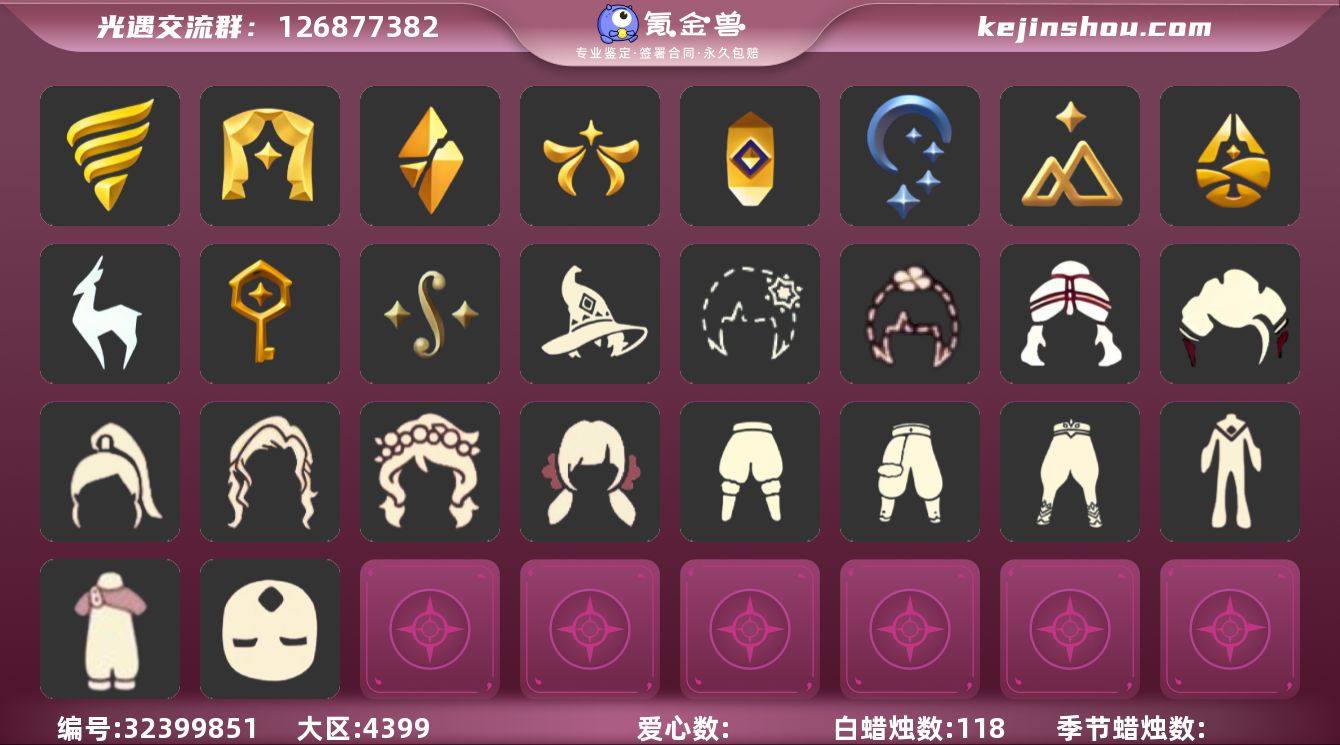 13季12翼白枭巫师帽欧若拉之翼透明斗武士裤绊爱莲花斗篷圣诞鹿角蛛网斗篷 资源:蜡烛593 爱心210 红烛65 12翼 已毕业地图:全图毕业 毕业季节:风行季 潜海季 表演季 破晓季 欧若拉季 追忆季 夜行季 九色鹿季 归巢季 姆明季 彩染季 青鸟季 拾光季季卡 毕业季节物品: 多羽发饰 蓝黄羽袖 暗红斗篷 单边小辫 氧气面具 燕尾斗篷 黄眉企鹅面具 白枭发型 双翼遥鲲斗篷 冥龙斗篷 留辨蘑菇头 高领舞服 透明蝶翼斗 肩带 追忆之书 九色鹿丸子头 九色鹿丝带裤 九色鹿飞天斗篷 棕熊面具 绒毛斗篷 五塑彩羽发 五塑彩带斗 姆明抱枕 姆明大伞 姆明长裙 彩染围巾斗篷 辉光羚羊面具 青鸟面饰 青鸟斗篷 稀有礼包:祥云瑞气服饰 暗彩装扮 巫师帽 绊爱套装 青衫落拓礼包 大桔大利 小狗周年头饰 星月头冠 九色鹿角 圣诞鹿角 欧若拉之翼 蛛网斗篷 青衫落拓礼包 祥云雨伞 皮皮猫 周年抱枕 大铁头 莲花斗篷 新春福娃礼包 热门裤子:遥鲲长袍 绑带舞服 奔月长袍 妮妮长裙 海洋武士裤 白棉裤 搓澡巾 紧身连体衣 武士裤 羽袖长袍 小丑服 女仆围裙 红色流珠裙 探险燕尾服 祥云瑞气服饰 暗彩装扮 热门面具: 矮人面具 狐狸面具 黄鼠狼面具 潜海面具 黄眉面具 一字眉 棕熊面具 盲僧眼罩 向导面具 红脸蛋面具 玫瑰花面具 粽叶面具 黑脸 鸟羽面具 热门发型:海藻头 爆炸头 大胡子 小飞象 雨妈 卡卡 平菇 龙骨 指甲盖 箬笠 公主头 水母头 书虫 总裁头 正太 高马尾 明制帽 郡主头 斗笠 绿丝带 虚荣 白枭 圆环发辫 留辫蘑菇头 彩色脏辫 彩羽发型 兔子头 春丽丸子头 樱花头 巫师帽 猫猫头 圣诞帽 绊爱发型 光头 青衫落拓发型 热门头饰...
