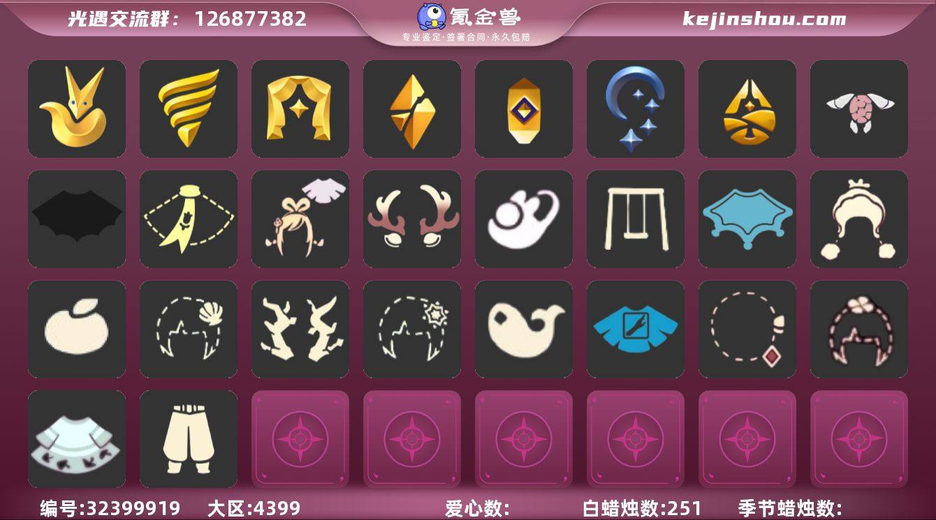 9季10翼透明蝶翼绊爱套装白枭神鹿头饰武士裤祥云纸伞搓澡巾白雪斗篷详情看图,价格可刀 资源:蜡烛29 爱心 36 红烛13 翼10 已毕业地图:全图毕业 毕业季节: 表演季 破晓季 欧若拉季 夜行季 九色鹿季 筑巢季 姆明季 追忆季半毕业 归巢季季卡 毕业季节物品: 燕尾斗篷 黄眉企鹅面具 白枭发型 双翼遥鲲斗篷 冥龙斗篷 留辨蘑菇头 高领舞服 透明蝶翼斗 棕熊面具 绒毛斗篷 九色鹿丸子头 九色鹿丝带裤 九色鹿飞天斗篷 设计师长袍 光之子试衣 姆明抱枕 姆明大伞 姆明长裙 稀有礼包:白雪斗篷 绊爱套装 祥云瑞气服饰 大桔大利 鲤跃龙门 玉兔头饰 星月头冠 九色鹿角 彩虹耳机 金鳞耳坠 圣诞鹿角 祥云纸伞 热门裤子:鳐鲲长裙 背带裤 绑带舞服 奔月长袍 妮妮长裙 搓澡巾 武士裤 紧身连体衣 小丑服 美工衣 祥云服饰 热门面具:矮人面具 黄鼠狼面具 黄眉面具 一字眉 棕熊面具 龙头 玫瑰花面具 黑脸 热门发型:海草头 爆炸头 大胡子 小飞象 雨妈 卡卡 平菇 龙骨 指甲盖 箬笠 蝴蝶结 公主头 粗辫 水母头 书虫 总裁 正太 高马尾 明制帽 郡主头 斗笠 虚荣 白枭 圆环发辫 留辫蘑菇头 李逍遥发型 兔子头 樱花头 马蹄莲发型 猫猫头 女巫发型 圣诞帽 绊爱发型 光头 热门头饰:花环 珊瑚 蓝色音乐会 红耳机 大桔大利 鲤跃龙门 玉兔头饰 星月头冠 神鹿头饰 彩虹耳机 金鳞耳坠 圣诞鹿角 热门斗篷:五角星斗篷 花瓣斗篷 红金斗篷 黑金斗篷 白金斗篷 蝴蝶斗篷 汉服斗篷 燕尾服斗篷 暗花斗篷 冥龙斗篷 鳐鲲长斗 展翼圆环斗篷 透明蝶翼 小浣熊斗篷 毛绒斗篷 彩霞斗篷 国风斗篷 灰色斗篷 姆明季斗篷 史力奇斗篷 樱花斗篷 郁金香斗篷 地球日斗篷 彩虹斗篷 白雪斗篷 绊爱斗篷 热门背饰:墨绿围巾 号角 冥龙号角...