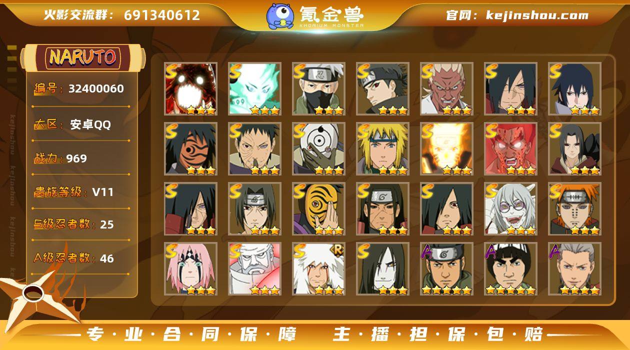 HY013  【游戏区服】安卓QQ 【VIP等级】12 【战力值】14130416 【段位】中忍2阶 【战力排名】本服排名:218,战区排名:未上榜 【忍者星数】615 【S忍】超佩恩·天道,木叶创立宇智波斑,九喇嘛连结漩涡鸣人,永恒万花筒宇智波佐助,忍界大战春野樱,自来也,舞之豪杰自来也,大蛇丸,纲手,死门迈特凯,波风水门,秽土转生波风水门,猿飞日斩,秽土转生猿飞日斩,秽土转生千手扉间,秽土转生千手柱间,木叶创立千手柱间,秽土转生宇智波斑,秽土转生·解宇智波斑,须佐能乎宇智波鼬,秽土转生宇智波鼬,须佐能乎宇智波止水,神秘面具男,白面具宇智波斑,忍界大战宇智波带土,红夜之刃神秘面具男,四代目风影罗砂,三代目雷影艾,秽土转生半藏,忍界大战大野木,天道佩恩,仙人模式药师兜,大筒木金式 【A忍】迈特凯,猿飞阿斯玛,干柿鬼鲛,疾风传我爱罗,蝎,宇智波鼬,飞段,死司凭血飞段,仙人模式漩涡鸣人,忍者之路神秘面具男,九尾查克拉漩涡鸣人,万花筒写轮眼宇智波佐助,须佐能乎宇智波佐助,百豪春野樱,忍界大战秋道丁次,忍界大战日向宁次,最终章日向雏田,万花筒写轮眼旗木卡卡西,宇智波止水,新春限定宇智波止水,新春限定波风水门,青年波风水门,忍界大战我爱罗,近松十人卫千代,侠隐江湖照美冥,五代目水影照美冥,漂泊武士桃地再不斩,奇拉比,忍界大战奇拉比,青年艾,侠隐江湖纲手,漂泊武士千手扉间,半蛇斗篷药师兜,青年长门,漂泊浪客佩恩·六道,小南,漂泊浪客小南,角都,地怨虞角都,晓大蛇丸,新春限定宇智波鼬,迪达拉,秽土转生迪达拉,暴怒宇智波带土,火之意志继承者卑留呼,猿飞木叶丸,五代目雷影达鲁伊,桃式显现漩涡博人,六代目水影长十郎,四代目土影黑土