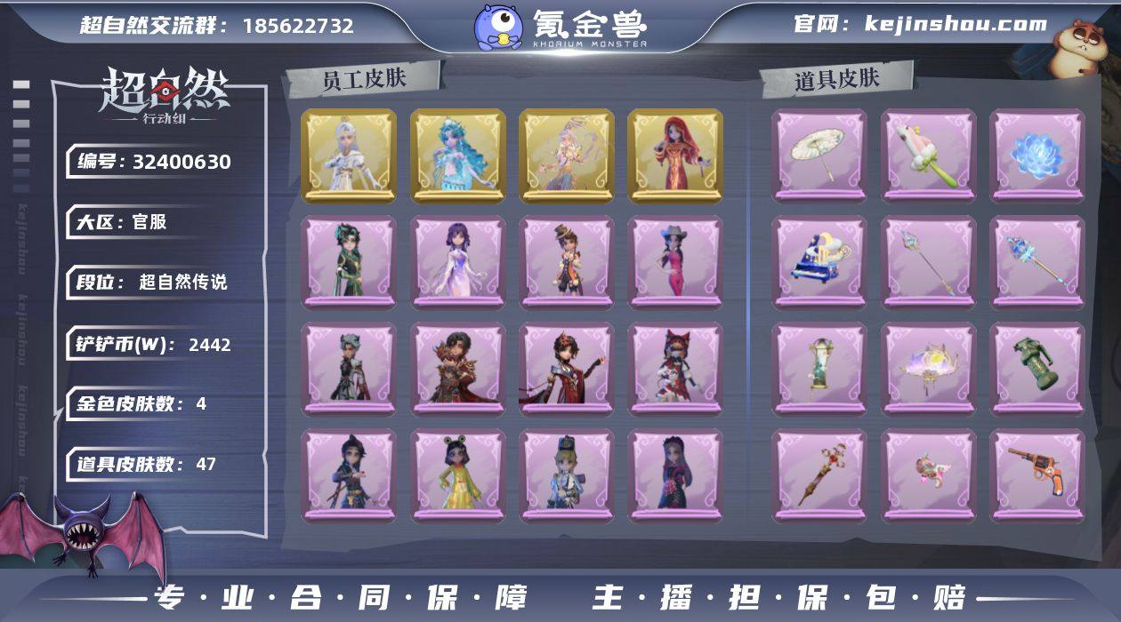 金皮3;紫皮18;道具皮27;皮肤:薇薇安-圣光之谕,逍遥-莲华渡,巫铃儿-镜花辞,兰-千夜星谕,小黄-霓裳踏雪,巫铃儿-素影瑶光,逍遥-绣春逍影,爱丽丝-瑞羽衔春,莉莉-莓果陷阱,薇薇安-仙锋小姐,阿念-迷途僵宝,艾伦-绒绒对决,爱丽丝-丝缕哀歌,爱丽丝-甜梦派对,零-搬开山,零-青云逸歌,小黄-青丘一梦,零-赤炼将军,小黄-异色序曲,小黄-呱呱雨衣,莉莉-情公主;道具:摸金符-花落精绝,摸金符-紫霄,刺刀-紫气东来,黄牛能量饮料-珍珠芭乐莓莓,急救包-蔷薇物语,音响-happy猫,转轮手枪-新星时代,除颤仪-弦外之音,长鞭-小狗蛇点点鞭,额外的背包-飞花令,腰包-月下莲台,喷气背包-乘风溯雪,葫芦-伏妖塔,铲子-焰骨,铲子-卡皮巴拉小黄豚铲,桃木剑-凤鸣九天,传送按钮-昆仑镜,音响-鸣沙鼓,长枪-罪棘,铲子-龙鳞,黄牛能量饮料-青玉抱丹,铲子-赞萌波板糖,刺刀-青瓷,摸金符-祝祷词,夜视仪-金丝眼镜,刺刀-碧络琅环,短管猎枪-赞萌露比水枪;美妆:美妆-暗夜小恶魔;饰品:头饰-咬咬鲨头套,头饰-萨卡班甲鱼头套,头饰-龙傲天头套,头饰-哈士奇头套,头饰-滑稽头套,头饰-嘻嘻头套,头饰-火爆了头套,头饰-炙热烧烤,头饰-烈焰红唇头套,头饰-小狗蛇点点头套,头饰-卑微头套,头饰-鱼头怪头套,头饰-鳄霸天头套,头饰-小财神豚豚头套,头饰-惊魂南瓜头套,头饰-呆滞头套,头饰-樱桃奶油布丁,头饰-大葱明头套,头饰-面具马头套,头饰-驼半仙头套,头饰-粽小宝头套,头饰-伤心蛙头套,头饰-哞哞牛头套,头饰-像素朋克墨镜,头饰-后室幸存者头套,挂饰-天使消失的年代,挂饰-九色祥鹿,挂饰-钗头凤,挂饰-糖果守卫,挂饰-小小玛丽,背饰-班卓琴,背饰-天使的呼唤,背饰-潮汐小海兔,背饰-鼠鼠小跟班,背饰-绒团小狐狸,背饰-蝶恋花;主页装扮:主页装扮-虚镜回廊;动作:动作-星奇摇,动作-鹏友摇,动作-DL摇,动作-知世摇,动作-心跳摇,动作-luvaboy,动作-七仔摇,动作-舞台中心,动作-伤心...