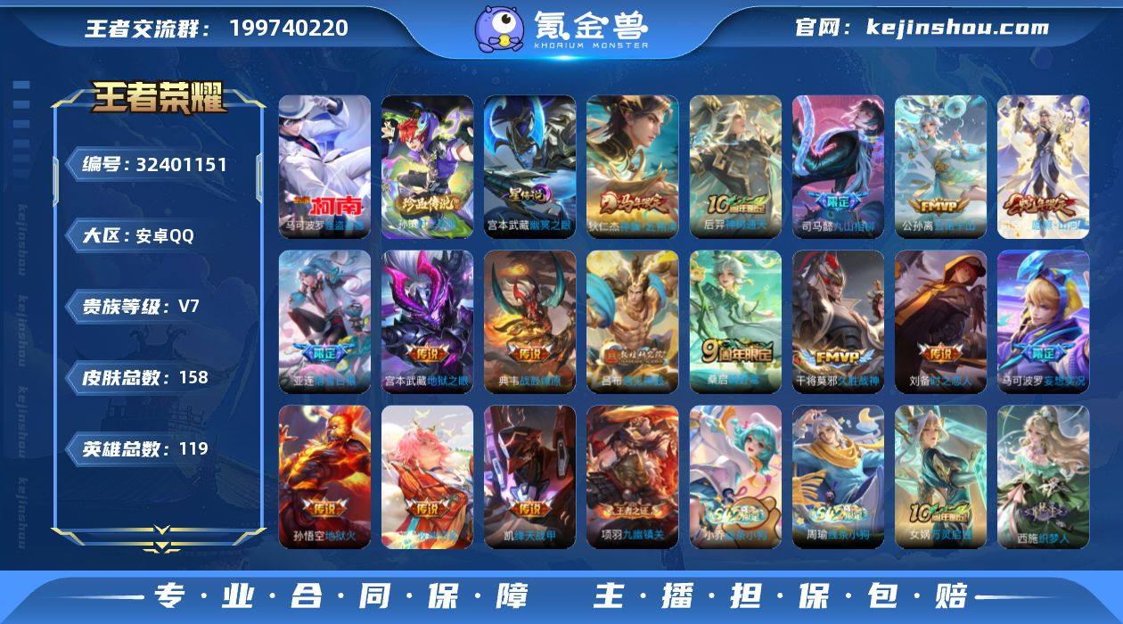 【高性价比·孙策时之奇旅·马可怪盗基德·刘备时之思念·荆棘舞步·幽冥之眼·狄仁杰神骥赴朔漠·九山相柳·云诺千山·妄想实况·可二次】YXw18775-安卓Q-119英雄-158皮肤-7王者印记-100铭文-贵族积分4w【贵族7】【2珍品·3星传说·16传说·20按键】【因赛季更新游戏段付以上号为准!】 【英雄全皮】:司马懿全皮,戈娅全皮,影全皮 【珍品传说】:孙策时之奇旅,马可波罗怪盗基德 【星元皮肤】:刘备时之思念,兰陵王荆棘舞步,宫本武藏幽冥之眼 【传说皮肤】:狄仁杰神骥赴朔漠,后羿神树通天,司马懿九山相柳,公孙离云诺千山,司空震愿照山河定,桑启鸣野蒿,庄周牧神诗旅,亚连落雪白狼,典韦战鼓燎原,吕布遇见神鼓,马可波罗妄想实况,铠绛天战甲,刘备时之恋人,干将莫邪久胜战神,宫本武藏地狱之眼,孙悟空地狱火 【限定皮肤】:姜子牙天穹之誓,李白谪仙醉月,狄仁杰阴阳师,赵云皇家上将,赵云引擎之心,赵云百木心枪,吕布遇见神鼓,元歌无心,马可波罗妄想实况,狄仁杰魔术师,项羽海滩派对,王昭君午后时光,李元芳银河之约,李元芳云中旅人,鬼谷子五谷丰年,沈梦溪大漠名商,裴擒虎擒涛扼浪,狂铁电玩高手,盾山梦圆繁星,西施玲珑珍味,鲁班大师探海日志,桑启海盐诗旅,...