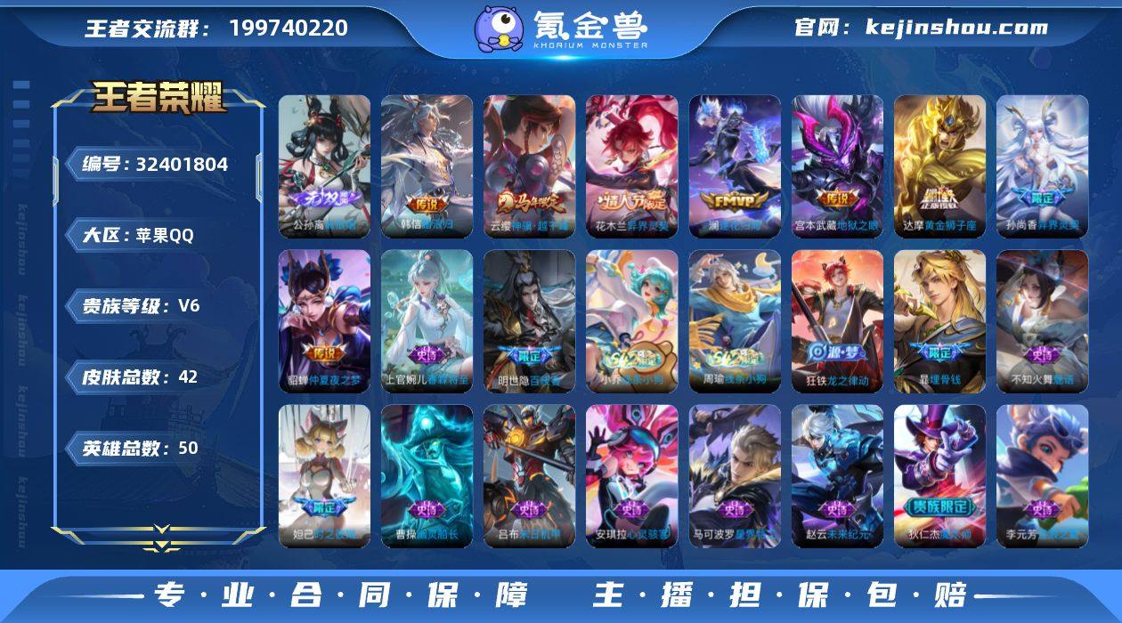 【特价出售】安卓Q-V7-至尊星耀II段位-125英雄-184皮肤-13传说-48史诗 【传说皮肤】:后羿神树通天,桑启鸣野蒿,李白诗剑行,百里守约碎云,赵云淬星耀世,王昭君乞巧织情,铠绛天战甲,曜云鹰飞将,李信一念神魔,刘备时之恋人,貂蝉猫影幻舞,达摩黄金狮子座,宫本武藏地狱之眼 【限定皮肤】:蒙犽顽岩魄,姜子牙天穹之誓,狄仁杰阴阳师,赵云皇家上将,庄周高山流水,甄姬落雪兰心,狄仁杰魔术师,达摩沙漠行僧,项羽海滩派对,韩信傲雪梅枪,兰陵王金庭之子,钟馗驱傩正仪,苏烈千军破阵,百里玄策原初追逐者,百里守约朱雀志,沈梦溪大漠名商,裴擒虎李小龙,裴擒虎擒涛扼浪,嫦娥暖冬兔眠,鲁班大师探海日志,桑启海盐诗旅,暃星界游侠,张良古海寻踪,蒙犽百解令,鬼谷子天穹祈灯,姬小满妄想食味,刘邦剑破天穹,刘备异域游侠,周瑜熔金海岸 【年限皮肤】:百里守约朱雀志,马超神威 【赛季限定】:达摩沙漠行僧,兰陵王金庭之子,张良古海寻踪,钟馗驱傩正仪,苏烈千军破阵,百里玄策原初追逐者,沈梦溪大漠名商,裴擒虎擒涛扼浪,鲁班大师探海日志,桑启海盐诗旅,鬼谷子天穹祈灯,刘邦剑破天穹,姜子牙天穹之誓 【战令限定】:甄姬落雪兰心,嫦娥暖冬兔眠,暃星界...