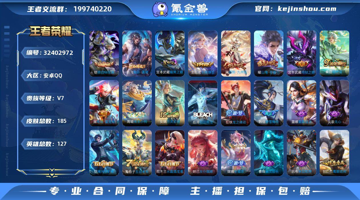 无二次-安卓Q-V6-最强王者段位-107英雄-100皮肤-1珍品传说-9传说-32史诗 【英雄全皮】:司马懿全皮,空空儿全皮,影全皮 【珍品传说】:嫦娥器灵落星盏 【传说皮肤】:司马懿九山相柳,公孙离云诺千山,司空震愿照山河定,澜愿照九州拓,裴擒虎祥瑞亨通,马超无双飞将,达摩黄金狮子座,花木兰冠军飞将,宫本武藏地狱之眼 【限定皮肤】:狄仁杰阴阳师,赵云皇家上将,狄仁杰魔术师,项羽海滩派对,孙悟空至尊宝,百里玄策原初追逐者,姬小满妄想食味,沈梦溪龙舞盛年 【年限皮肤】:司空震愿照山河定,澜愿照九州拓 【赛季限定】:太乙真人谧流熔炉,钟馗虚灵犬护,甄姬逆浪荇歌,亚瑟荣光之誓,百里玄策原初追逐者,项羽九幽镇关 【战令限定】:孙膑茶境仙,马超访茗客,刘禅鸭鸭历险记,沈梦溪鸭鸭历险记,周瑜线条小狗 【史诗皮肤】:明世隐百晓客,周瑜线条小狗,项羽九幽镇关,公孙离涂山容容,黄忠百相守梦,狂铁龙之律动,刘禅鸭鸭历险记,阿轲化蝶舞,赵怀真器灵浮梦炉,孙膑茶境仙,姬小满妄想食味,弈星滕王阁序,司马懿暗渊魔法,百里玄策原初追逐者,娜可露露晚萤,狄仁杰鹰眼统帅,白起星夜王子,程咬金功夫厨神,蔡文姬舞动绿茵,铠曙光守护者,百里守约特工魅影,诸葛亮黄金分割率,孙悟空至尊宝,张飞乱世虎臣,曹操幽灵船长,妲己魅力维加斯,嬴政摇滚巨星,孙尚香水果甜心,宫本武藏鬼剑武藏,狄仁杰魔术师,貂蝉圣诞恋歌,赵云皇家上将,露娜紫霞仙子 【其他皮肤】:蚩奼极光幻客,曹操逐霄之志,艾琳鹤鸣心笺,亚瑟荣光之誓,鬼谷子克喵,莱西奥踏浪烽翎,空空儿戏梦巡演,庄周锦麟游梦,甄姬逆浪荇歌,白起死霸装,姬小满小满鸭,露娜命运加冕,阿古朵布丁狗之约,张良灵野札记,小乔秘证寻踪,苏烈春野闲踪,沈梦溪鸭鸭历险记,钟馗虚灵犬护,刘备浪漫序章,戈娅玫蓝誓约,明世隐景韶洛都,...