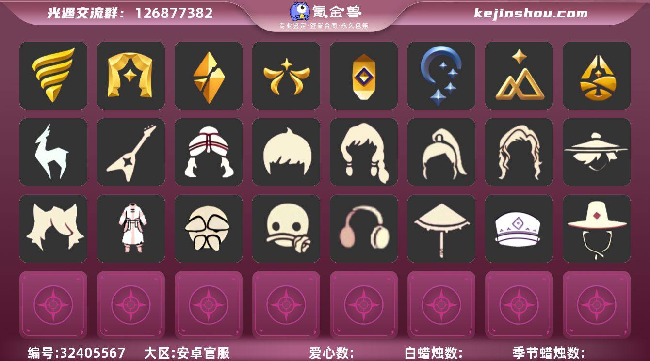 "9季多复刻漂亮号 绊爱 星月王冠 铜钱斗 音韵吉他 编号:YXB7267 区服:安卓 翼数量:154 资源:蜡烛:116 爱心:43 红蜡:0 已毕业地图: 霞谷 毕业季节:潜海季 表演季 破晓季 欧若拉季 追忆季 夜行季 拾光季 归巢季 九色鹿季 热门礼包:绊爱 星月王冠 铜钱斗 音韵吉他 热门复刻:彩虹链带 过膝长袍 小丑睡衣 狐狸面具 鼬鼠面具 老爷爷面具 修行面具 玫瑰花面具 圣诞铃铛 斗笠 蝴蝶结发型 公主头 粗辫 书虫 总裁头 正太 高马尾 明制帽 郡主 箬笠 花环 虚荣 平顶帽 猫猫头 半扎马尾 樱花发型 猫耳发型 单片羽毛 红耳机 飘带耳坠 兰花斗 幽兰斗 荧蓝斗 红金斗 黑金斗 蔚紫斗 道袍 小浣熊斗 绿芽斗 海浪斗 彩虹斗 暗彩斗 枯叶斗 圣诞斗 电吉他 雨伞 星星灯 女巫茶桌 "