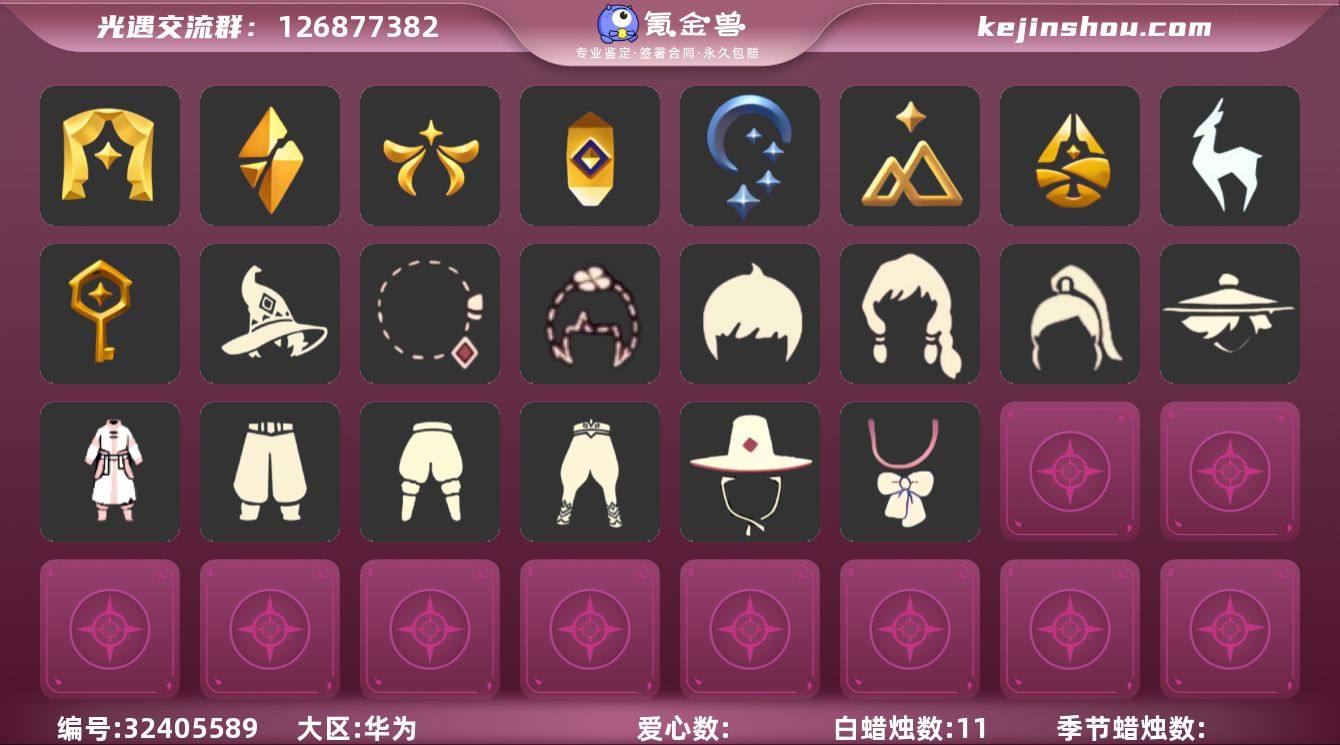 蜡烛数量:200 爱心数量:119 季节蜡烛数量:4 翼数量:227 欧若拉季,追忆季,夜行季,拾光季,归巢季,九色鹿季,筑巢季,二重奏季,姆明季,彩染季,青鸟季,迁徙季 姆明季·斗篷,黑金,白金,绿芽,万圣斗,海洋斗,彩虹斗,樱花斗,马蹄莲斗,暗彩斗,粉浴巾,蓝浴巾,黄浴巾 禁阁指甲盖发型,迁徙鳐语者发型,迁徙钟匠发型,雨妈发型,马蹄莲发型,紫色挑染半扎发型,飞天盘发,郡主发型,彩虹发型,冥龙长辫,遥鲲长辫,绿带麻花辫,歪啾啾发型,光头图腾,公主头,秃头发型,总裁发型,长发脏辫,公主,蝴蝶结,正太,书虫,高马尾,粗辫,虚荣,花环,若笠,明制,樱花,猫耳,女巫,圣诞帽,虎狮 筑巢季·裤子,姆明季·裤子,妮妮裙子,透明裤子,武士裤,白棉裤,搓澡巾,灯笼裤,连体裤,毛靴裤,背心短裤 黄鼠狼,矮人面具,黑脸,九色鹿面具,牛头,龙头 迁徙钟匠眼镜,黑框眼镜,彩虹耳坠,红耳机,护目镜,星星眼镜 迁徙铃铛,蛛网挂饰,玉兔尾巴,粽叶吊床,摆件金钱树,相框,鲲灯,螃蟹背饰,遥鲲玩偶,蓝色遮阳伞,小风车,水图腾,相机,钟,吊灯,姆明季帐篷,姆明抱枕,姆明全家福,树枝艺术吊,筑巢季钥匙,筑巢季·小手办,雨伞,笛子,吉他,高音钢琴,玉桂狗茶桌,火盆,烟花棒,帐篷,万圣椅,蹦迪灯,气球,礼炮,坐垫,爱心抱枕,火炬,三角钢琴,彩色三角钢琴,大提琴挂画,钢琴挂画,波浪琴键挂画,海螺挂画,二重奏挂画 枯叶发饰,红色耳机,花环-头饰,蝴蝶结-头饰,贝雷帽 迁徙季节项链,优雅领结,青鸟毕业项链,彩染季项链,史力奇围巾,夜行季绒毛围脖,欧若拉季节项链,九色鹿季节项链,螃蟹肩饰,黑色领巾,姆明季围巾,粉色蝴蝶结,铃铛,黑色领结,追忆季节项链,围巾,海浪围巾 人字拖,姆明季·鞋子,万圣鞋,芭蕾鞋 渐变双马尾发型礼包,兔子鞋,彩虹帽,橘子,红伞,兔子,彩虹耳钉,彩虹耳机 卖家说:诚心卖,成品号