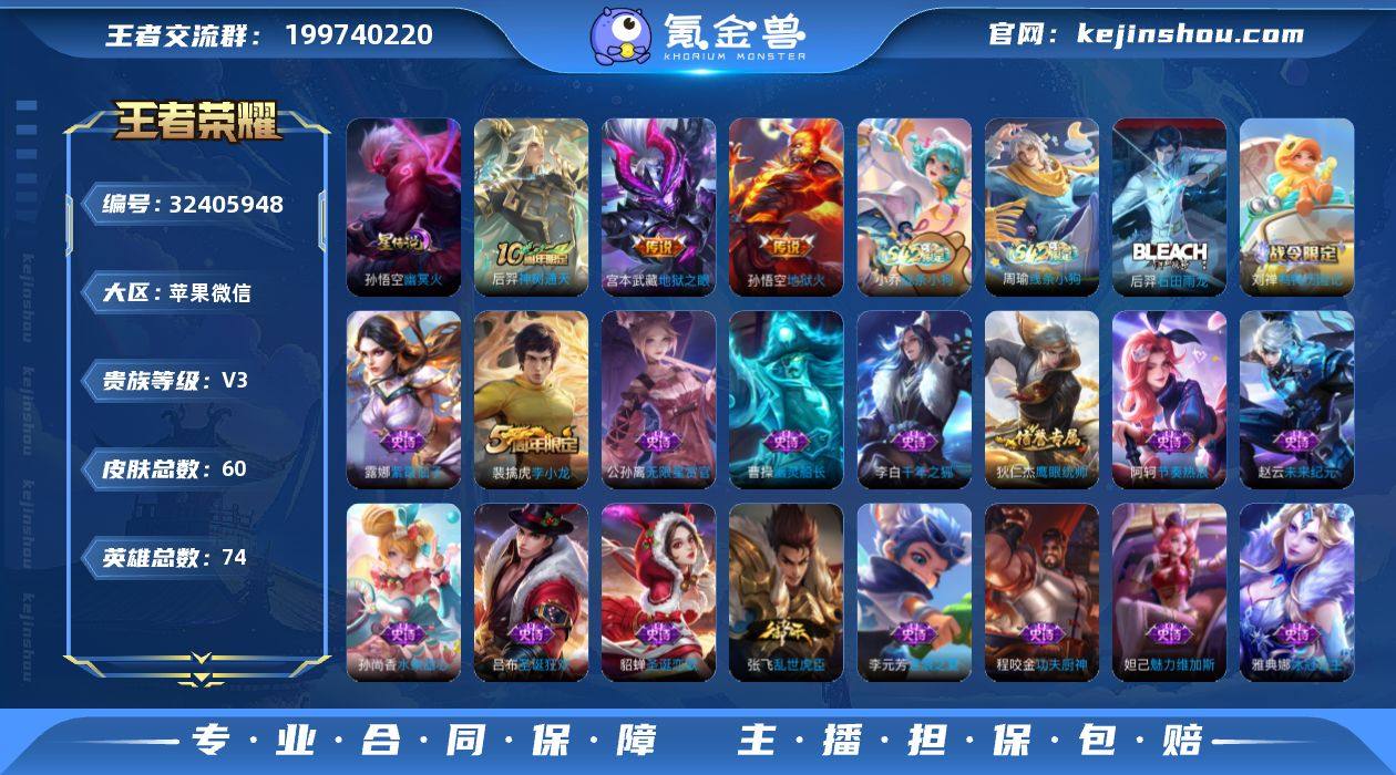 "省标百里守约!地狱之眼!地狱火!无限星赏官!js1659-苹果WX-V3-最强王者段位-74英雄-60皮肤-3传说-17限定-1星元幽冥火-20史诗 【传说皮肤·3】:后羿神树通天,宫本武藏地狱之眼,孙悟空地狱火 【限定皮肤·2】:狄仁杰阴阳师,裴擒虎李小龙 【赛季限定·4】:太乙真人谧流熔炉,钟馗虚灵犬护,甄姬逆浪荇歌,亚瑟荣光之誓 【战令限定·4】:刘禅鸭鸭历险记,沈梦溪鸭鸭历险记,周瑜线条小狗,小乔线条小狗 【史诗皮肤·21】:周瑜线条小狗,小乔线条小狗,后羿石田雨龙,刘禅鸭鸭历险记,裴擒虎李小龙,公孙离无限星赏官,狄仁杰鹰眼统帅,阿轲节奏热浪,程咬金功夫厨神,李元芳逐浪之夏,雅典娜冰冠公主,张飞乱世虎臣,李白千年之狐,曹操幽灵船长,吕布圣诞狂欢,妲己魅力维加斯,嬴政摇滚巨星,孙尚香水果甜心,貂蝉圣诞恋歌,赵云未来纪元,露娜紫霞仙子 【其他皮肤·36】:鲁班七号班班快跑,妲己线条小狗,虞姬溯影追猎,艾琳鹤鸣心笺,亚瑟荣光之誓,莱西奥踏浪烽翎,庄周锦麟游梦,甄姬逆浪荇歌,白起死霸装,姬小满小满鸭,露娜命运加冕,阿古朵布丁狗之约,沈梦溪鸭鸭历险记,钟馗虚灵犬护,太乙真人谧流熔炉,戈娅危途狂花,马可波罗潮玩牛仔,大乔守护之力,...