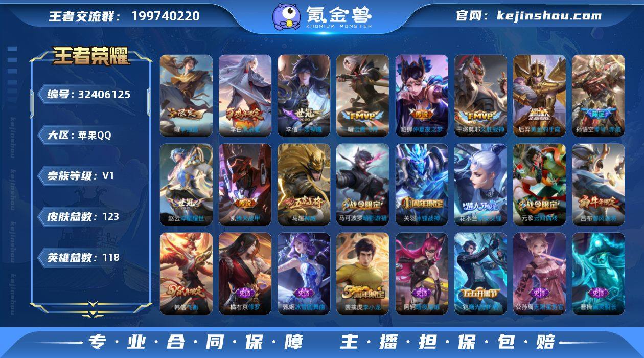 苹果Q-V7-尊贵铂金II段位-118英雄-123皮肤-10传说-36史诗 QW2631606 【传说皮肤】:赵云淬星耀世,曜李逍遥 ,铠绛天战甲,孙悟空零号赤焰,曜云鹰飞将,李信一念神魔,干将莫邪久胜战神,后羿黄金射手座,貂蝉仲夏夜之梦,李白凤求凰 【限定皮肤】:狄仁杰阴阳师,赵云皇家上将,墨子神迹守卫,嬴政优雅恋人,孙膑天狼运算者,芈月重明,吕布御风骁将,元歌云间偶戏,夏侯惇朔风刀,马可波罗暗影游猎,狄仁杰魔术师,狄仁杰万华元夜,达摩沙漠行僧,项羽海滩派对,老夫子醍醐杖,老夫子航海奇遇记,关羽冰锋战神,程咬金演武夺筹,韩信飞衡,兰陵王金庭之子,花木兰默契交锋,亚瑟潮玩骑士王,孙悟空零号赤焰,牛魔御旌,李元芳银河之约,李元芳云中旅人,钟馗驱傩正仪,雅典娜单词大作战,鬼谷子原初探秘者,苏烈千军破阵,百里玄策原初追逐者,弈星混沌棋,沈梦溪星空之诺,沈梦溪大漠名商,明世隐疑决卦,裴擒虎李小龙,裴擒虎擒涛扼浪,云中君纤云弄巧,盾山御銮,猪八戒西部大镖客,曜李逍遥 ,蒙犽狂想玩偶喵,鲁班大师探海日志,桑启海盐诗旅,张良古海寻踪,鬼谷子天穹祈灯 【年限皮肤】:李白凤求凰,韩信飞衡,吕布御风骁将 【赛季限定】:芈月重明,牛魔御旌,盾...