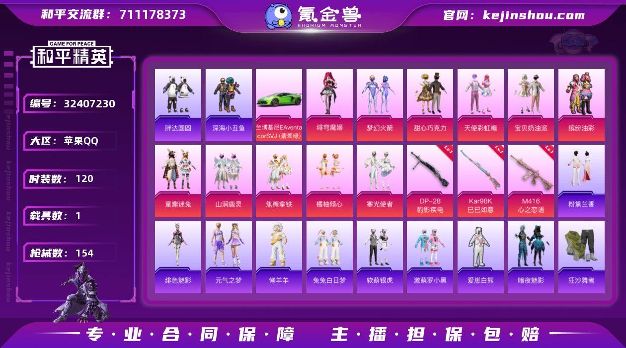 苹果 【素材号 梦幻火箭/都市猎人/派对舞王/M416-五爪金龙(七级)/兰博基尼Aventador SVJ(翡翠绿)】手Q-15粉装-6特效枪-3载具-6粉色飞行器-112674热力值-11王牌印记-291套装-319枪皮 【热门品类】:粉装-梦幻火箭,粉装-繁龙极客,套装-都市猎人,套装-派对舞王,套装-小丑鱼,套装-奇异狩猎者,套装-暗夜之虎,套装-暗影哥特,熔岩游骑兵连帽夹克 【粉色套装】:粉装-深海曼妙,粉装-未来战士,粉装-深渊皇后,粉装-天使彩虹糖,粉装-木曜青龙,粉装-梦幻火箭,粉装-金风玉露,粉装-苍蓝魅影,粉装-香水柠檬,粉装-繁龙极客,角色-智耀战神,角色-凤凰座 一辉,角色-天鹅座 冰河,粉装-幻彩电音,角色-奇迹舞步 美雪 【粉色枪皮等级】:M416-五爪金龙(七级),M416-心之恋语(七级),M416-风花雪月(四级),M416-灵猫魔法师(三级),Kar98K-巳巳如意(五级),DP-28-豹影疾电(五级) 【粉色载具】:兰博基尼Aventador SVJ(翡翠绿),双人摩托-梦幻火箭,黑曜夜骑 【粉色枪皮】:M416-五爪金龙,M416-心之恋语,M416-风花雪月,M416-灵猫魔法师,Kar98K-巳巳如意,DP-28-豹影疾电 【粉色飞行器】:梦幻火箭飞行器,激战未来飞行器,镜光幻境飞行翼,沙丘之主天马,万象金身飞行器,灵猫魔法师飞行器 【粉色降落伞】:极限特训降落伞,快乐主宰降落伞,春暖花开降落伞,梦幻火箭降落伞,金风玉露降落伞,神秘黑猫降落伞,古堡领主降落伞,香水柠檬降落伞,王牌四分卫降落伞,星之彼岸降落伞,庄周梦蝶降落伞,冷魅冰骑降落伞,歌者泠鸢降落伞,繁龙极客降落伞,樱桃泡泡降落伞,星穹咏叹调降落伞,双重狂想降落伞,冷漠罗丽降落伞,荧海星豚降落伞,灵猫魔法师降落伞,绯穹魔姬降落伞,喜羊羊与灰太狼降落伞,魔童闹海 敖丙降落伞,异瞳寒姬降落伞 【稀有套装】:套装-巳巳如意,套装-圣穹绘梦,套装-雏菊兔兔,套装-萝...