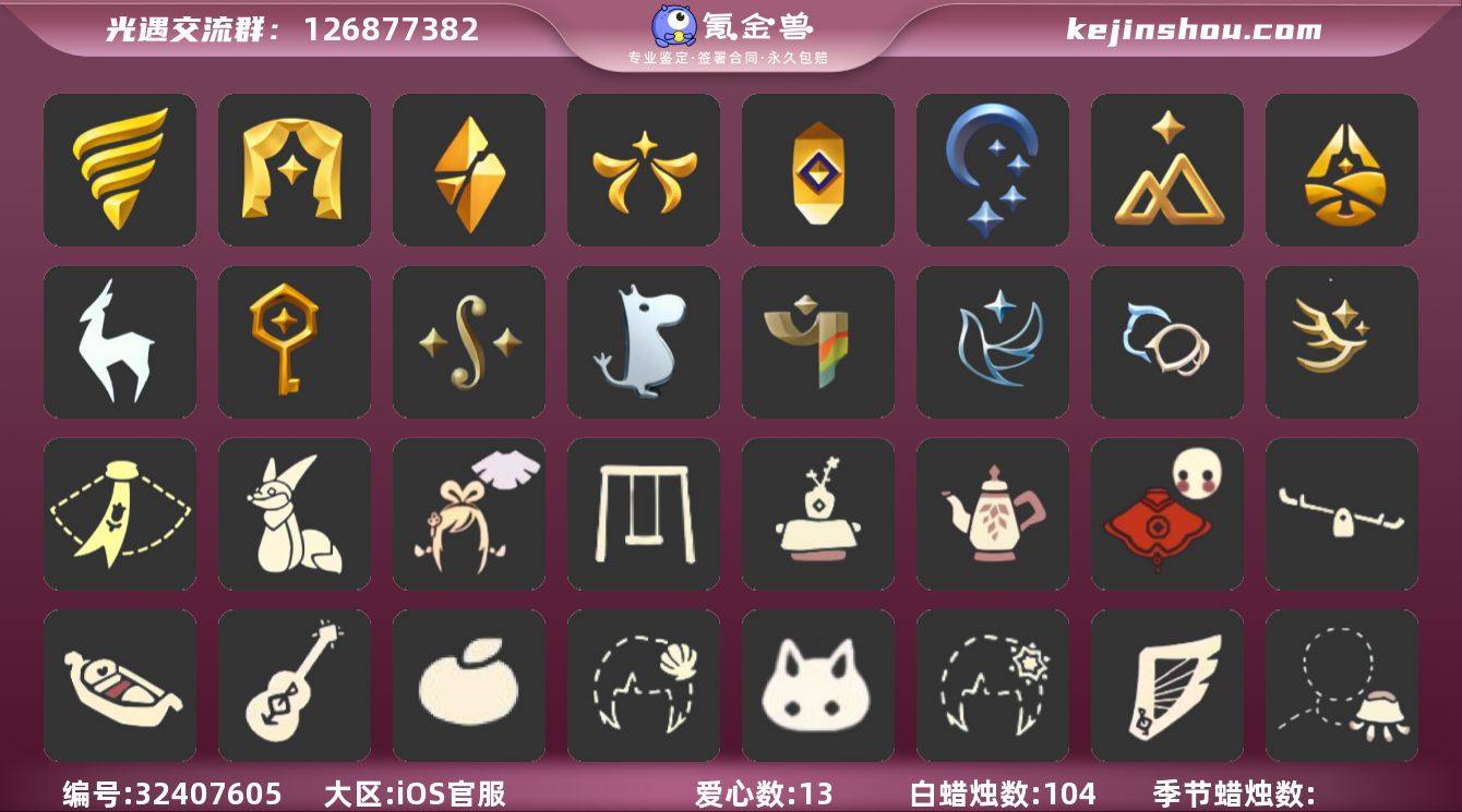 账号类型: 手机账号 季节已毕业: 潜海季,表演季,破晓季,欧若拉季,夜行季,追忆季,拾光季,归巢季,九色鹿季,筑巢季,二重奏季,姆明季,彩染季,青鸟季,双星季,迁徙季 完成地图: 晨岛,云野,雨林,霞谷 珍稀物品: 白枭,透明蝶翼斗,彩虹围巾 礼包: 围巾,小狐狸,绊爱,秋千,茶桌,茶壶,福娃,跷跷板,小船,吉他,橘子,贝壳,兔子,雪花,竖琴,水母,猫套,星月头饰,彩虹耳钉,蝴蝶结,四叶草,创始人 裤子: 武士裤,背带裤,搓澡巾,妮妮裙子,蓝绿裤,筑巢季·裤子 面具: 呼吸面具,夜行毕业面具,黄眉企鹅面具,辉光羚羊面具 面饰: 红耳机,黑框眼镜,青鸟毕业面饰 项链: 围巾 发型: 归巢毕业发型,若笠,虚荣,单侧绑发,留辫蘑菇头,飞天盘发 头饰: 牛仔帽,蓝色音乐会,平顶帽 斗篷: 海洋斗,绿芽,粉红绒毛斗篷,遥鲲斗篷,燕尾斗篷,冥龙斗篷,领主红斗篷,彩染围巾斗篷,青鸟毕业斗篷 配饰: 雨伞,筑巢季·小手办,高音钢琴,姆明抱枕,小红伞,相机,鲲灯 亮点: 【优质装备】:表演季,白枭(帝企鹅发),武士裤,潜海季,破晓季,透明蝶翼斗,欧若拉季(欧若拉),归巢毕业发型(五塑彩羽发),筑巢季·小手办(光之子试衣),高音钢琴(白色高脚钢琴),夜行季,追忆季,妮妮裙子(妮妮长裙),牛仔帽(西部帽),姆明抱枕,小红伞(姆明红伞)(姆明大伞),相机(...