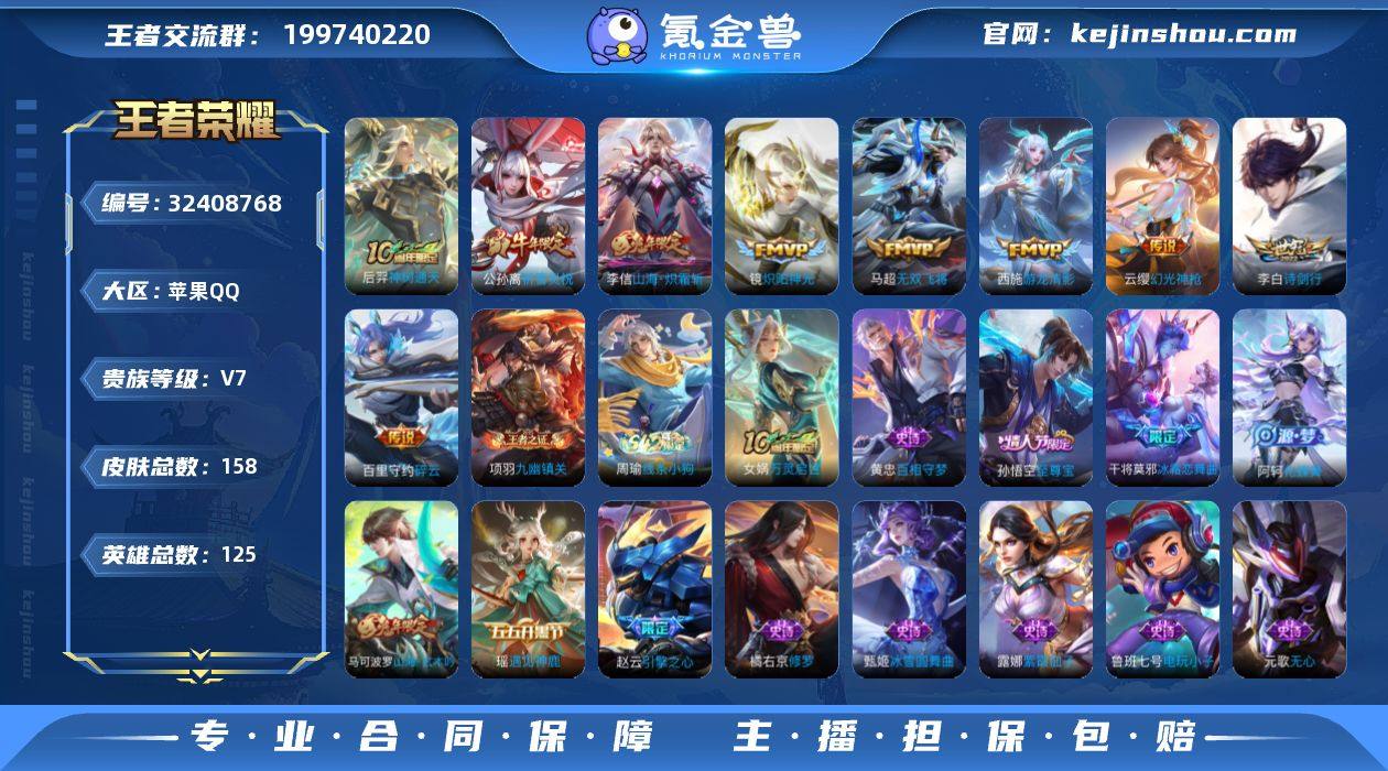 苹果Q-V8-最强王者段位-127英雄-212皮肤-16传说-66史诗 【传说皮肤】:后羿神树通天,镜炽阳神光,虞姬启明星使,干将莫邪久胜战神,虞姬云霓雀翎,达摩黄金狮子座,百里玄策白虎志,花木兰冠军飞将,梦奇胖达荣荣,后羿黄金射手座,诸葛亮武陵仙君,貂蝉仲夏夜之梦,孙尚香末日机甲,宫本武藏地狱之眼,孙悟空地狱火,狄仁杰超时空战士 【限定皮肤】:狄仁杰阴阳师,赵云皇家上将,嬴政白昼王子,孙尚香蔷薇恋人,鲁班七号狮舞东方,芈月重明,吕布猎兽之王,周瑜赤莲之焰,元歌云间偶戏,夏侯惇朔风刀,曹操烛龙,典韦蓝屏警告,狄仁杰魔术师,狄仁杰万华元夜,项羽海滩派对,老夫子醍醐杖,程咬金演武夺筹,露娜一生所爱,兰陵王驯魔猎人,兰陵王金庭之子,花木兰瑞麟志,孙悟空大圣娶亲,牛魔御旌,李元芳云中旅人,虞姬启明星使,钟馗神迹守卫,钟馗驱傩正仪,女娲朔望之晖,干将莫邪冰霜恋舞曲,鬼谷子原初探秘者,鬼谷子五谷丰年,诸葛亮武陵仙君,铠青龙志,百里玄策白虎志,百里守约朱雀志,弈星混沌棋,沈梦溪大漠名商,明世隐疑决卦,裴擒虎李小龙,米莱狄御霄,云中君纤云弄巧,盾山御銮,上官婉儿梁祝,上官婉儿天狼绘梦者,桑启海盐诗旅,蒙恬荣光圣徽 【年限皮...
