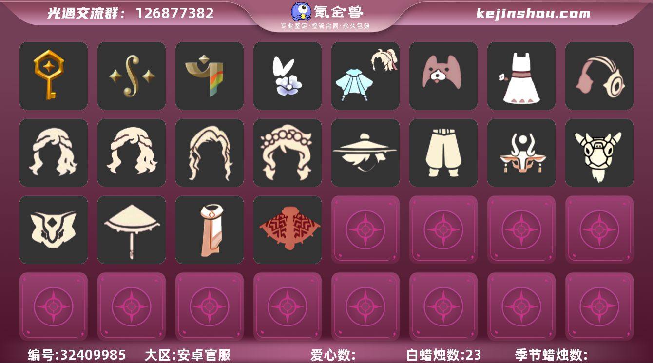 蜡烛数:23/爱心数:19/晨岛/云野/霞谷/筑巢季/二重奏季/彩染季/设计师长袍/合奏挂画/蓝色燕尾服/白色高脚钢琴/辉光羚羊面具/彩染围巾斗篷/蓝色星星光环/海蓝波浪发型/小狗周年发饰/蝴蝶与花发饰礼包/彩虹耳机/白雪斗篷/青衫落拓礼包/音韵吉他/武士裤/虚荣/花环/若笠/白金斗篷/雨伞/向日葵连衣裙/黄鼠狼/羊头面具/花环长发/玉兔发饰/蝴蝶与花发饰/小海牛配饰/围巾斗篷
