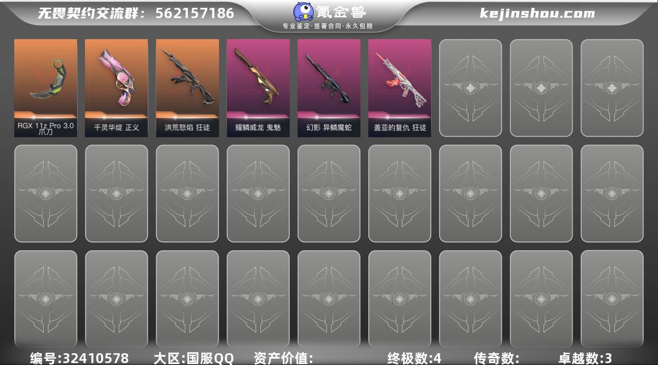 【性价比】L2783 洪荒狂徒 耀鳞鬼魅 异鳞幻影 莲花正义 显卡爪刀 盖亚狂徒 库存: 10230 剩余VP:83 剩余R点:60 段位:白银2