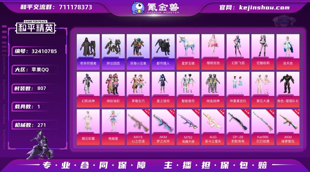 苹果 手Q-25粉装-9特效枪-2载具-6粉色飞行器-84953热力值-12王牌印记-183套装-214枪皮 【热门品类】:粉装-童趣迷兔,套装-浪漫天命,套装-深海小丑鱼,套装-小丑鱼,角色-军刀雅典娜,套装-胖达团团,套装-龟仙人,套装-糯粉咩咩 【粉色套装】:粉装-粉色回忆,粉装-冰霜白皇,粉装-童趣迷兔,粉装-炙焰红王,粉装-山涧鹿灵,粉装-精灵娃娃,粉装-酣梦娃娃,粉装-暗星紫秘,粉装-碧影闪光,粉装-岚岚物语,粉装-恐龙拽拽,粉装-庄周梦蝶,粉装-幻梦音符,粉装-绚丽摇曳,粉装-闪耀律动,粉装-橘柚倾心,粉装-赤焰黑爵,粉装-紫电风暴,粉装-甜梦小狐,粉装-炙焰牛王,粉装-星夜魔法师,粉装-圣光天使,粉装-霞光圣骑,粉装-寒光使者,角色-绯穹魔姬 【粉色枪皮等级】:SCAR-L-童趣迷兔(七级),M762-冷魅冰骑(六级),UZI-绮梦青鸾(五级),UZI-筑梦精灵(一级),UMP45-恐龙拽拽(五级),AWM-橘柚倾心(五级),SKS-碧影闪光(五级),Mk14-樱桃泡泡(一级),DP-28-豹影疾电(五级) 【粉色载具】:路特斯EVIJA(星际黄),软萌羊咩咩 【粉色枪皮】:SCAR-L-童趣迷兔,M762-冷魅冰骑,UZI-绮梦青鸾,UZI-筑梦精灵,UMP45-恐龙拽拽,AWM-橘柚倾心,SKS-碧影闪光,Mk14-樱桃泡泡,DP-28-豹影疾电 【粉色飞行器】:炫彩糖果飞行器,春暖花开飞行器,天之羽翼飞行器,庄周梦蝶飞行器,幻梦音符飞行器,星夜魔法师飞行翼 【粉色降落伞】:绝对恒星降落伞,极限特训降落伞,粉色回忆降落伞,春暖花开降落伞,荧光虫舞降落伞,暗翼战神降落伞,甜心娃娃降落伞,暗星紫秘降落伞,天之羽翼降落伞,碧影闪光降落伞,恐龙拽拽降落伞,庄周梦蝶降落伞,幻梦音符降落伞,橘柚倾心降落伞,冷魅冰骑降落伞,筑梦精灵降落伞,甜梦小狐降落伞,炫彩糖果降落伞,霁蓝缠春降落伞 【稀有套装】:套装-龟仙人,套装-雪国风尚,套装-炫彩糖果,套装-...
