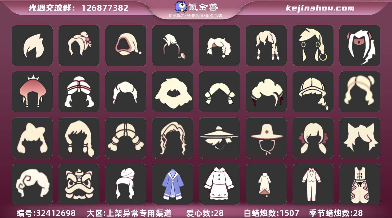 诚心卖 出号之前都会养着 武士裤,躲猫猫裤子,白棉裤,灯笼裤,破晓季遥鲲裙,姆明裤子,五周年短裤,彩虹束脚裤,等等,黑脸面具,眼罩,太阳镜,等等,疯帽,猫猫头,樱花,爱神,冥主,表演季猫猫头,箬笠,虚荣,明制帽,总裁头,书虫,脏辫,公主,蝴蝶结,鼠标头饰,爱心帽子,单边羽毛,栗子帽,蝴蝶,珊瑚头饰等等,彩虹斗篷,狼人杀斗篷,道袍,红金,黑金,蝴蝶斗,红绒斗篷等等,笛子,红金吉他,琵琶,卡林巴,电吉他,宴会长桌,万圣节凳子,甜甜圈桌子,有三个可以挂机的烧火的东西,爱心抱枕,向日葵摆件等等,矮个子,蜡烛1500+