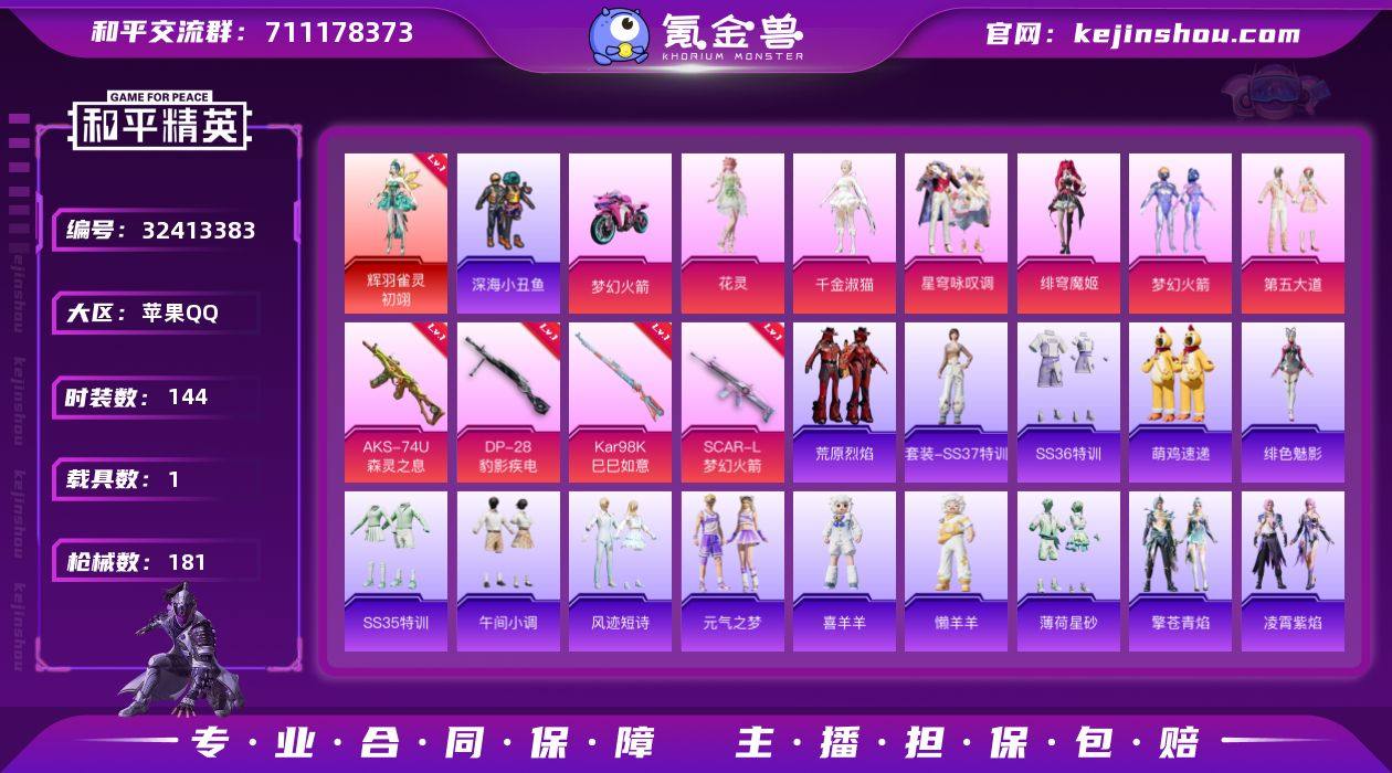 可二次实名【女号4级红装6粉装4特效枪1载具 秒换绑不用等】 苹果Q区-61541热力值-8印记-144套装-181枪皮 【1红装】 辉羽雀灵-初翊(4级)【1载具】 双人摩托梦幻火箭【1稀有】 Mark.06蓝螳螂【6粉装】 梦幻火箭 第五大道 角色-绯穹魔姬 星穹咏叹调 角色-花灵 角色-千金淑猫【4特效枪】 AKS-74U-森灵之息(5级) SCAR-L-梦幻火箭(4级) Kar98K-巳巳如意(5级) DP-28-豹影疾电(5级)【201热门】 鹰眼刺客 破蛋小黄鸡 深海小丑鱼 白色伏地魔 SS27特训 SS26特训 SS25特训 SS24特训 SS23特训 SS22特训 Mini14-梦幻火箭 SCAR-L-玉兔迎春 GROZA-恐龙拽拽 M762-天降萌叽 Mk47-乌木金纹 UZI-娇憨猪猪 UMP45-炫光之旅 MG3-幻世战舞者 M416-蓝色火焰 M762-第五大道 长空猛禽 弄潮海豚 虚音幻奏 甜心亚梦 特训学院 青涩时光 牛气冲天 霓虹极客 妙红点点 魅力单车 猎鹰 漫步者 海岛探路者 风暴特警 纯真浪花 汤姆逊-智耀战神 S1897-糯团青竹 情公主 AC-VAL-荒原烈焰 顶瓜瓜 冰河战士 雏菊兔兔 MG-36-薄荷星砂 恋语绒绒 SS34特训 朱霞炽焰 S1897-荧海星豚 星影赞美诗 AWM-天降萌叽 时希公主 突击盾牌-初号机 觉醒Ver. 暗影刺翼 大橘大利 AMR-时光之誓 彩虹兔 SS20特训 SS21特训 凌霄紫焰 蓝冰羽 龙...