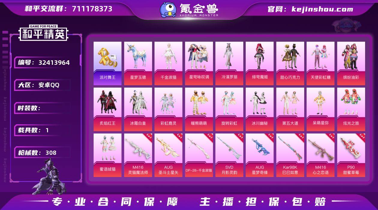 满级星梦AUG 番茄 晶辉 满地铁天赋】c27719-【无二次】【因赛季更新游戏段付以上号为准!】 安卓Q-4稀有1载具17粉装15特效枪15热门204套装308枪皮 13印记 历史卓越王牌14星 【4稀有】 AKM-缤纷海域 浪漫天命 派对舞王 派对舞王(金靴子) 【1载具】 星梦玉骢 【18粉装】 绯穹魔姬 蜜语绒猫 天使彩虹糖 甜心巧克力 千金淑猫 炫光之旅 星穹咏叹调 冷漠罗丽 呆萌星弥 缤纷油彩 第五大道 冰川幽秘 冰霜白皇 炙焰红王 暖熊萌萌 旋转彩虹 彩虹鹿灵 霁蓝缠春 【16特效枪】 SCAR-L-纯梦嫁纱 (7级) SCAR-L-锦绣绵绵 (5级) M416-心之恋语 (7级) M416-灵猫魔法师 (3级) Kar98K-巳巳如意 (5级) DP-28-千金淑猫 (1级) DP-28-豹影疾电 (5级) SVD-月影灵韵 (2级) AUG-圣斗士星矢 (1级) AUG-星梦奇缘 (9级) DP-28-圣堂之誓 (5级) M417-第五大道 (4级) UMP45-启明星 (6级) P90-甜蜜草莓 (6级) Mk14-福马献瑞 (5级) M249-霁蓝缠春(2级) 【15热门】 小丑鱼 龟仙人 红熊茄茄 潮萌小黄鸭 晶辉守护 万圣娃娃 鹰眼刺客 大橘为重 团圆交子 瑞龙福将 漫步者 破蛋小黄鸡 弄潮海豚 M762-瑞龙福将 M24-香水柠檬 【1飞行器】 萌物绒绒飞行器 【3头盔】 童趣迷兔头盔 甜心宝贝头盔 深海小丑鱼头盔 【...
