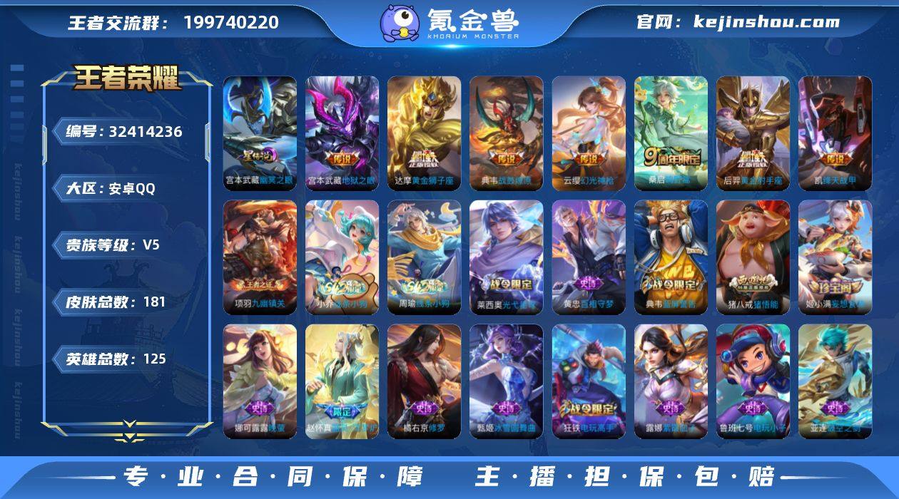 【c4158】安卓Q-V5-【特价出售 永久包赔】鲜花五百多朵!2金标!至尊星耀V段位-125英雄-181皮肤-7传说-55史诗 【英雄全皮】:孙权全皮,敖隐全皮 【传说皮肤】:云缨幻光神枪,桑启鸣野蒿,典韦战鼓燎原,铠绛天战甲,达摩黄金狮子座,后羿黄金射手座,宫本武藏地狱之眼 【限定皮肤】:蔡文姬夏日便利店,虞姬夏日便利店,姜子牙天穹之誓,杨戬破阵退雄兵,狄仁杰阴阳师,赵云皇家上将,夏侯惇朔风刀,典韦蓝屏警告,狄仁杰万华元夜,达摩沙漠行僧,项羽海滩派对,老夫子醍醐杖,李元芳云中旅人,钟馗驱傩正仪,干将莫邪胡桃夹子,鬼谷子原初探秘者,鬼谷子五谷丰年,苏烈千军破阵,弈星混沌棋,梦奇顽趣,沈梦溪大漠名商,明世隐疑决卦,狂铁御狮,狂铁电玩高手,米莱狄御霄,盾山御銮,猪八戒猪悟能,鲁班大师探海日志,桑启海盐诗旅,张良古海寻踪,高渐离燃音魔法,鬼谷子天穹祈灯,姬小满妄想食味,鲁班七号蔬乡物语,李元芳蔬乡物语,刘邦剑破天穹,程咬金群星魔术团,镜青焰无极,项羽苍威无极,周瑜熔金海岸 【赛季限定】:狂铁御狮,米莱狄御霄,盾山御銮,夏侯惇朔风刀,弈星混沌棋,明世隐疑决卦,老夫子醍醐杖,鬼谷子原初探秘者,狄仁杰万华元夜,钟馗驱傩正仪,...