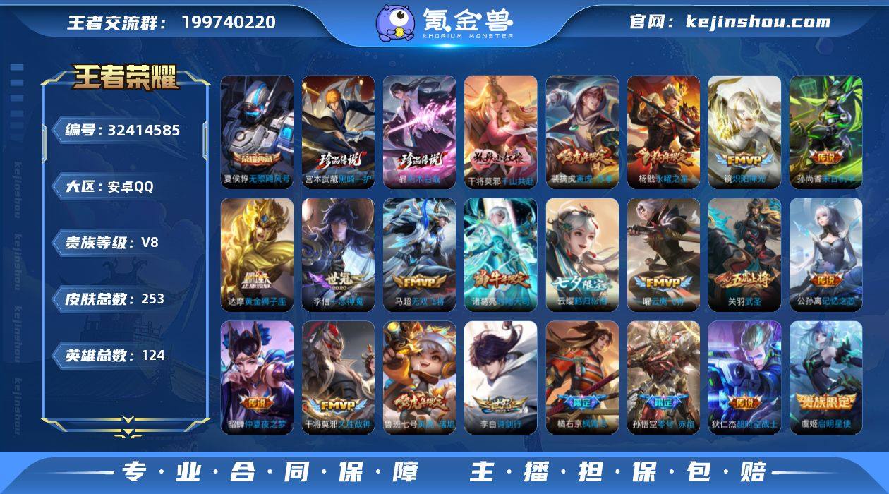 【特价出售/店主推荐】安卓Q-V6-至尊星耀III段位-126英雄-339皮肤-3典藏皮肤-2星传说-12传说-97史诗 【英雄全皮】:刘邦全皮,影全皮 【荣耀典藏】:孙悟空全息碎影,李白鸣剑曳影,诸葛亮星域神启 【传说皮肤】:后羿神树通天,桑启鸣野蒿,虞姬启明星使,曜云鹰飞将,伽罗太华,干将莫邪久胜战神,达摩黄金狮子座,花木兰冠军飞将,后羿黄金射手座,貂蝉仲夏夜之梦,李白凤求凰,狄仁杰超时空战士 【限定皮肤】:蒙犽顽岩魄,蔡文姬夏日便利店,虞姬夏日便利店,姜子牙天穹之誓,李白谪仙醉月,狄仁杰阴阳师,赵云皇家上将,墨子神迹守卫,妲己时之彼端,嬴政优雅恋人,孙尚香蔷薇恋人,鲁班七号乒乒小将,庄周玄嵩,阿轲迷踪丽影,钟无艳超时空战士,元歌云间偶戏,元歌无心,夏侯惇朔风刀,甄姬幽恒,甄姬落雪兰心,曹操天狼征服者,典韦岱宗,马可波罗暗影游猎,狄仁杰魔术师,狄仁杰万华元夜,达摩沙漠行僧,项羽海滩派对,老夫子醍醐杖,老夫子航海奇遇记,关羽冰锋战神,程咬金演武夺筹,刘邦夺宝奇兵,韩信逐梦之影,韩信飞衡,王昭君午后时光,兰陵王金庭之子,亚瑟潮玩骑士王,孙悟空至尊宝,牛魔御旌,后羿辉光之辰,后羿如梦令,李元芳银河之约,李元芳云中旅人,虞姬启明星使,钟馗驱傩正仪,雅典娜单词大作战,雅典娜黎明之约,蔡文姬繁星吟游,鬼谷子原初探秘者,鬼谷子五谷丰年,弈星混沌棋,沈梦溪星空之诺,沈梦溪大漠名商,明世隐疑决卦,裴擒虎李小龙,裴擒虎擒涛扼浪,狂铁御狮,云中君纤云弄巧,伽罗太华,猪八戒西部大镖客,上官婉儿梁祝,蒙犽狂想玩偶喵,鲁班大师探海日志,桑启海盐诗旅,艾琳女武神,高渐离燃音魔法,妲己灵卜魔法,鬼谷子天穹祈灯,沈梦溪龙舞盛年,刘邦剑破天穹,刘备异域游侠,周瑜熔金海岸 【年限皮肤】:李白凤求凰,后羿辉光之辰,伽罗太华,甄姬幽恒,韩信飞衡...