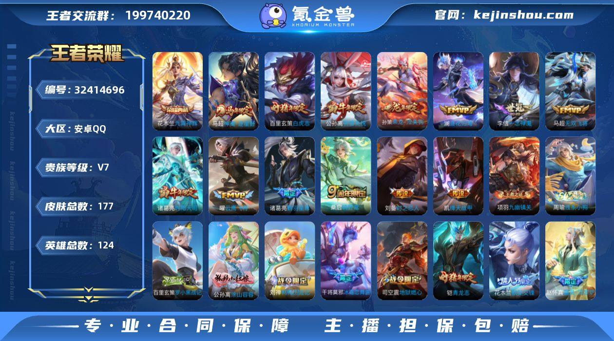 【精品推荐·九霄神辉·时之思念·神骥逐星野·白虎志·祈雪灵祝·逐花归海·乘龙淬吴钩·时雨天司·无双飞将·云鹰飞将·一念神魔·可二次】YXw19927-安卓Q-124英雄-177皮肤-12王者印记-190铭文-贵族积分4w【贵族7】【1典藏·1星传说·13传说·1按键】【因赛季更新游戏段付以上号为准!】 【荣耀典藏】:花木兰九霄神辉 【星元皮肤】:刘备时之思念 【传说皮肤】:马超神骥逐星野,桑启鸣野蒿,孙策乘龙淬吴钩,澜逐花归海,诸葛亮鹤羽星尊,马超无双飞将,公孙离祈雪灵祝,诸葛亮时雨天司,铠绛天战甲,曜云鹰飞将,李信一念神魔,刘备时之恋人,百里玄策白虎志 【限定皮肤】:姜子牙天穹之誓,狄仁杰阴阳师,赵云皇家上将,墨子降魔,孙尚香蔷薇恋人,元歌无心,狄仁杰魔术师,狄仁杰万华元夜,项羽海滩派对,花木兰默契交锋,李元芳云中旅人,钟馗驱傩正仪,干将莫邪冰霜恋舞曲,鬼谷子原初探秘者,鬼谷子五谷丰年,诸葛亮时雨天司,诸葛亮鹤羽星尊,铠青龙志,百里玄策白虎志,百里玄策原初追逐者,梦奇顽趣,公孙离祈雪灵祝,沈梦溪大漠名商,裴擒虎李小龙,裴擒虎擒涛扼浪,云中君纤云弄巧,嫦娥拒霜思,鲁班大师探海日志,桑启海盐诗旅,艾琳流音漫舞,司空震地狱燃心,张良古海寻踪,...