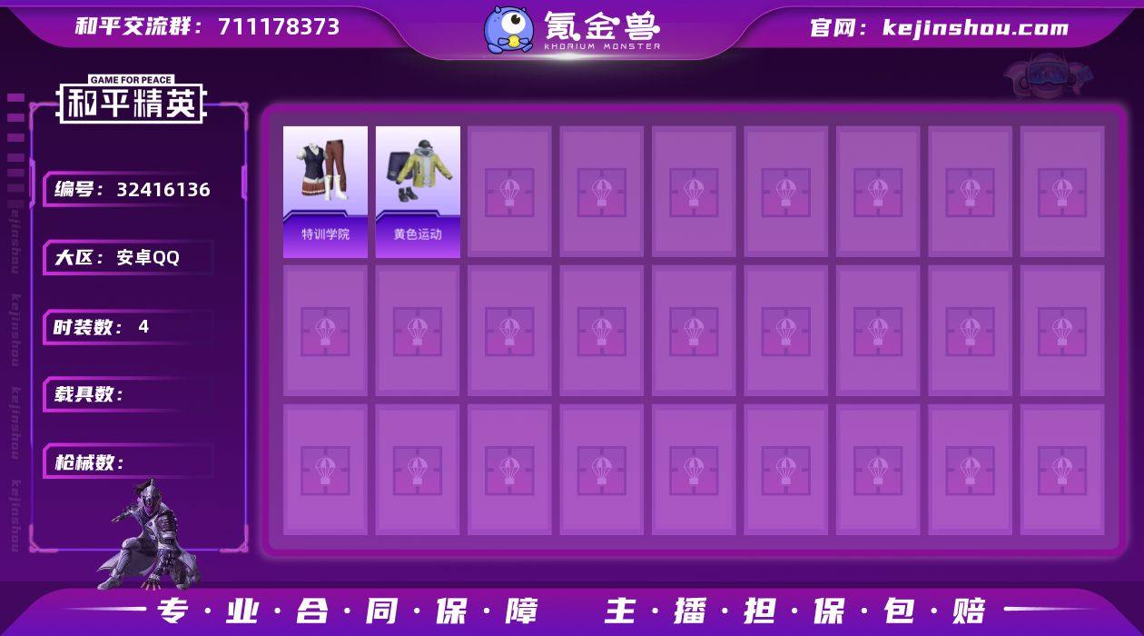 安卓 手Q-2粉装-0特效枪-0载具-20800热力值-3印记-75套装-68枪皮 【优质套装】:角色-幻影,粉装-炫光之旅 【稀有套装】:套装-龟仙人 【稀有武器皮肤】:AKM-2P战斗服款,AKM-彩虹符号,AKM-影袭,AKM-破晓战魂,AKM-龙的传人,M16A4-幻世战舞者,M16A4-莲影清波,M416-糯团青竹,M416-红色方程式,M416-绯红前夜,M416-蓝色火焰,GROZA-彩虹符号,GROZA-影袭,GROZA-田园牧歌,AUG-2P战斗服款,AUG-天降萌叽,AUG-耀粉歌者,QBZ-彩虹符号,M762-暗夜鎏金,M762-绯红前夜,Mk47-妙红点点,蜜獾-天降萌叽,UZI-天降萌叽,UMP45-涂山之恋,UMP45-炫光之旅,Vector-彩虹符号,Vector-生命誓言,Vector-田园牧歌,汤姆逊-天降萌叽,汤姆逊-暗夜鎏金,M24-影袭,AWM-音爆索尼克,SKS-未来歌姬,VSS-彩虹符号,VSS-田园牧歌,Mini14-涂山之恋,AMR-妙红点点,M417-惊鸿侠骨,M200-惊鸿侠骨,S686-生命誓言,S1897-暗夜鎏金,S12K-玩趣呆呆,S12K-幻世战舞者,DBS-彩虹符号,DBS-第五大道,SPAS-12-田园牧歌,M249-妙红点点,M249-彩虹符号,DP-28-甜心宝贝,MG3-妙红点点,MG3-幻世战舞者,MG3-惊鸿侠骨,MG3-第五大道,爆炸猎弓-惊鸿侠骨,大砍刀-2P战斗服款 【其他套装】:套装-SS21特训,套装-SS22特训,套装-SS23特训,套装-SS24特训,套装-SS25特训,套装-SS26特训,套装-冰川格斗者,套装-冷焰舞者,套装-完美偶像,套装-幻世战舞者,套装-幻影武者,套装-战地督导,套装-极速红龙,套装-柠萌假日,套装-沙漠兵团,套装-浪漫天命,套装-涂山之恋,套装-湖蓝色名流,套装-灼焰舞者,套装-热血青春,套装-牛气冲天,套装-特训学院,套装-猛禽,套装-王牌教练,套装-白熊同盟,套装-白色伏地魔,套装-破晓战魂,套装-破蛋小黄鸡,套装-竞技名士,套装-竞技达人朋克,套装-绮丽涂鸦,套装-绯格组合,套装-耀眼新星,...
